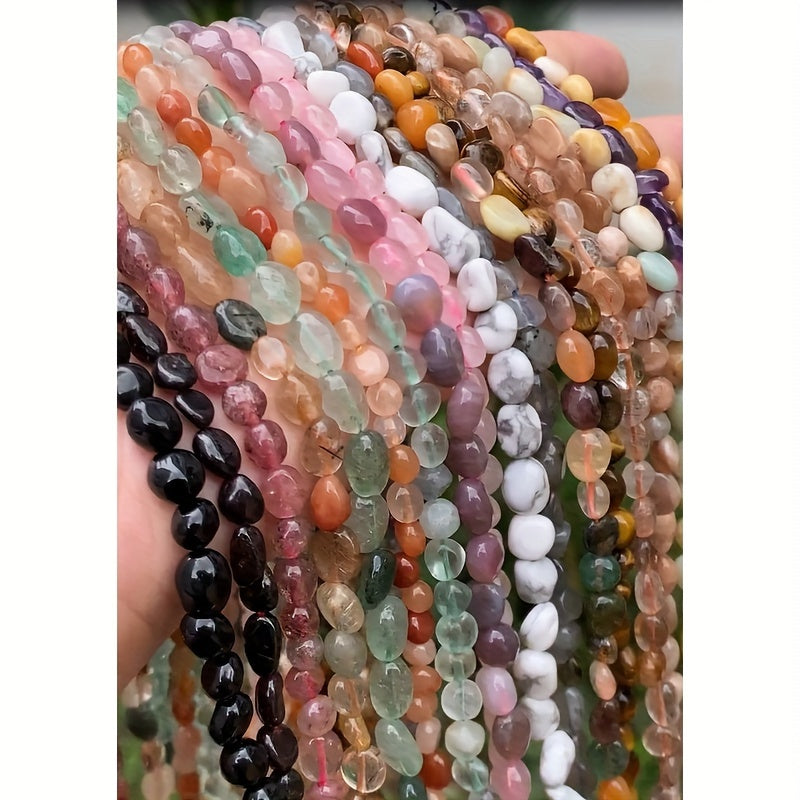 Craft beautiful jewelry with these 6x8mm natural irregular oval stone beads in rose quartz, amazonite, and labradorite. Perfect for creating unique bracelets and necklaces.