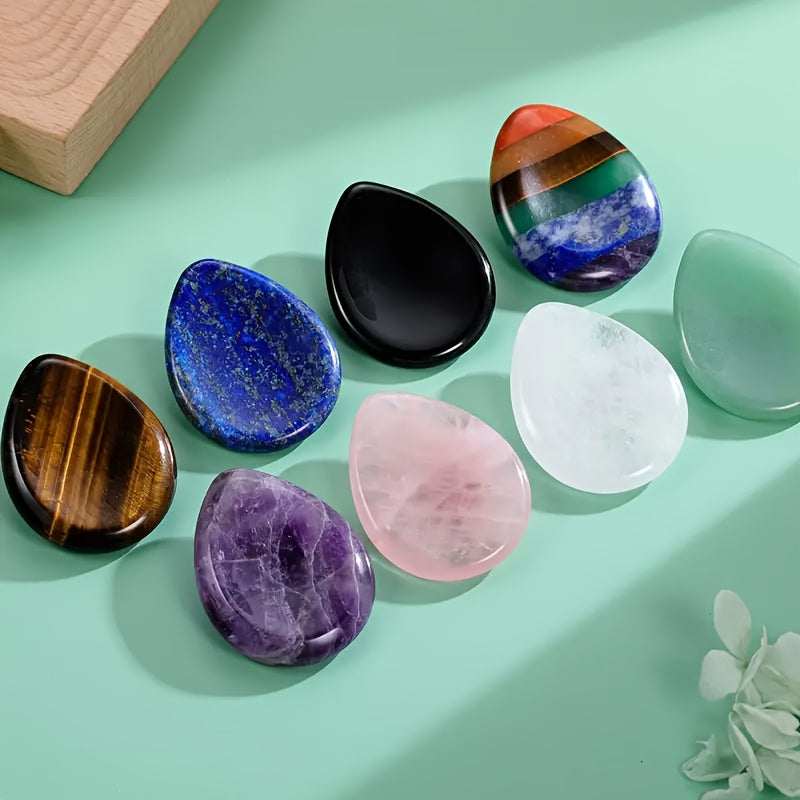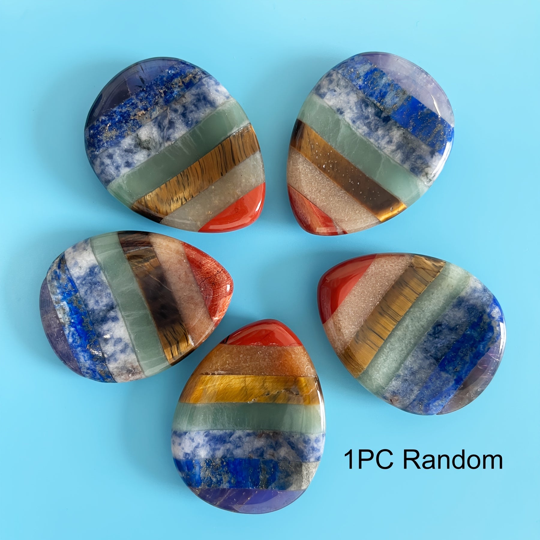 Experience anxiety relief with this 7 chakra crystals thumb worry stone. The oval pocket palm stone features rose quartz and more, perfect for meditation and relaxation. Makes a great gift for those battling anxiety.