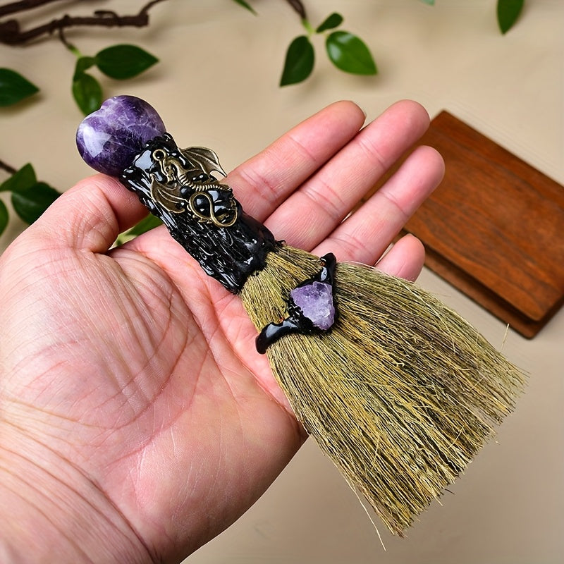 This artificial crystal broom is perfect for Halloween and makes a unique gift for witches. The heart-shaped design adds a touch of magic to any space.