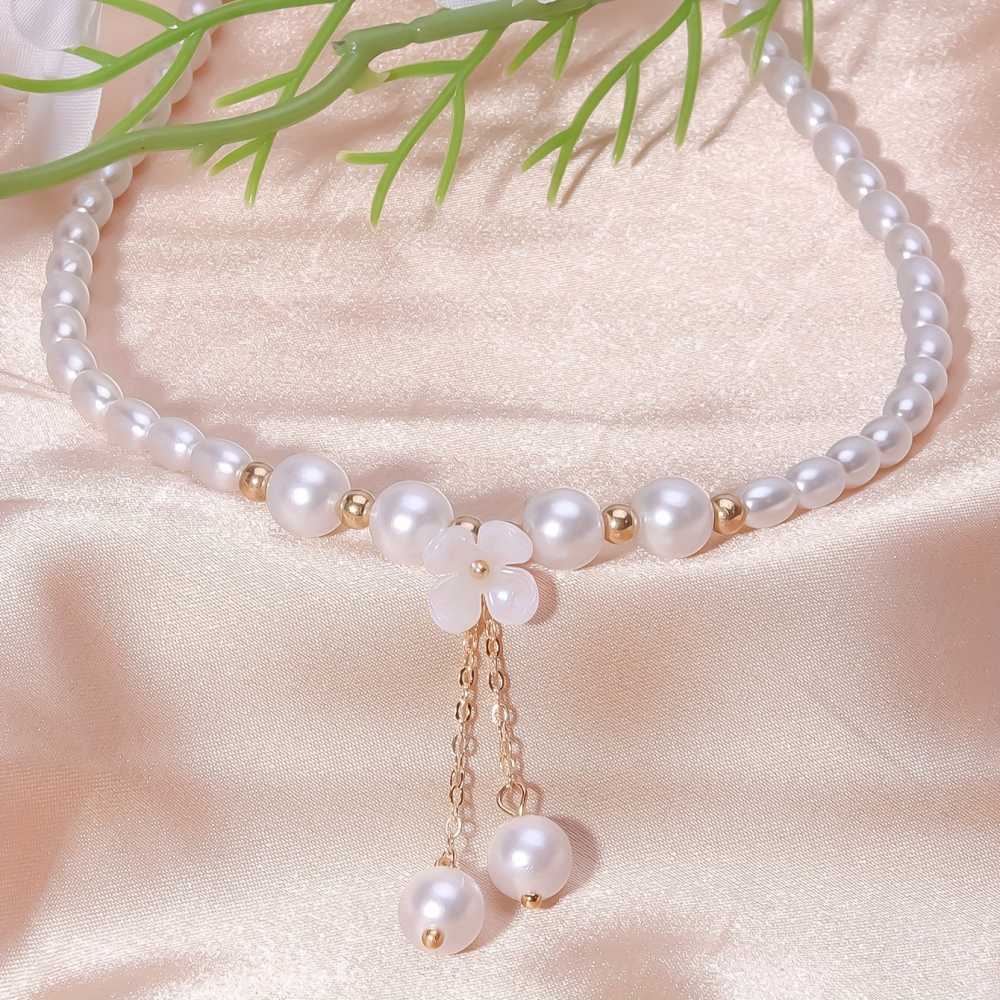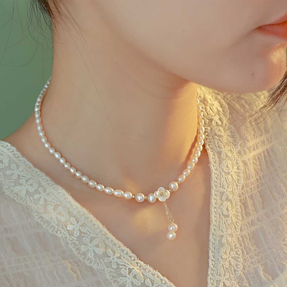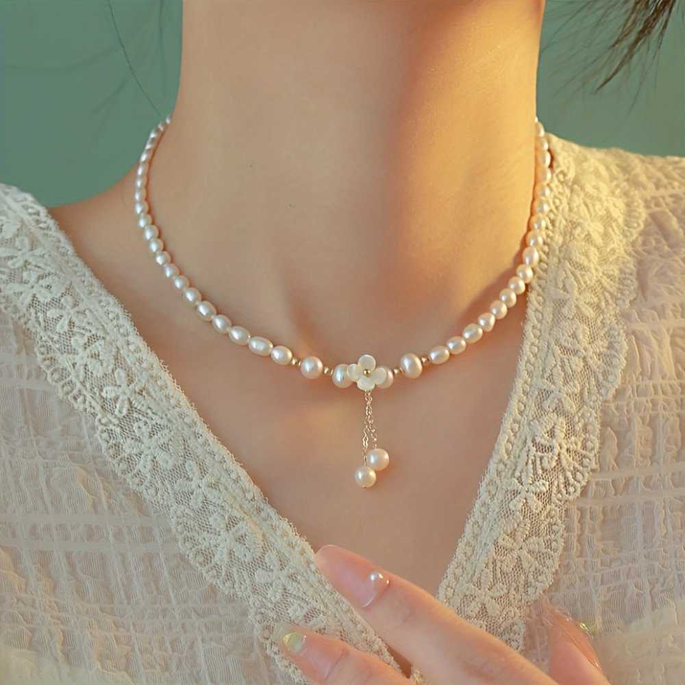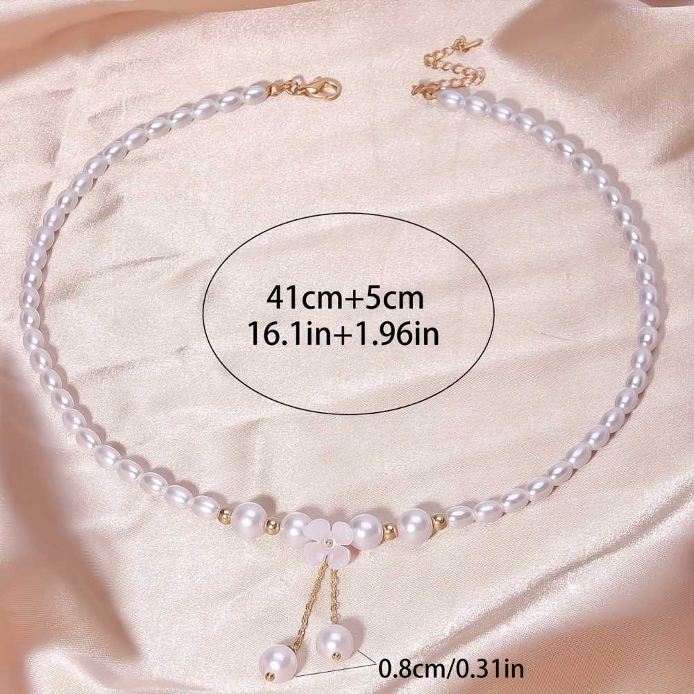 - Product Particulars: This vintage inspired pearl choker necklace features high quality materials, beautifully plated silver. Adorned with an elegant acrylic flower pendant and dangling pearls, it combines sophistication with comfort. Designed for easy wear, it includes a secure closure, making it perfect for daily use or special occasions.