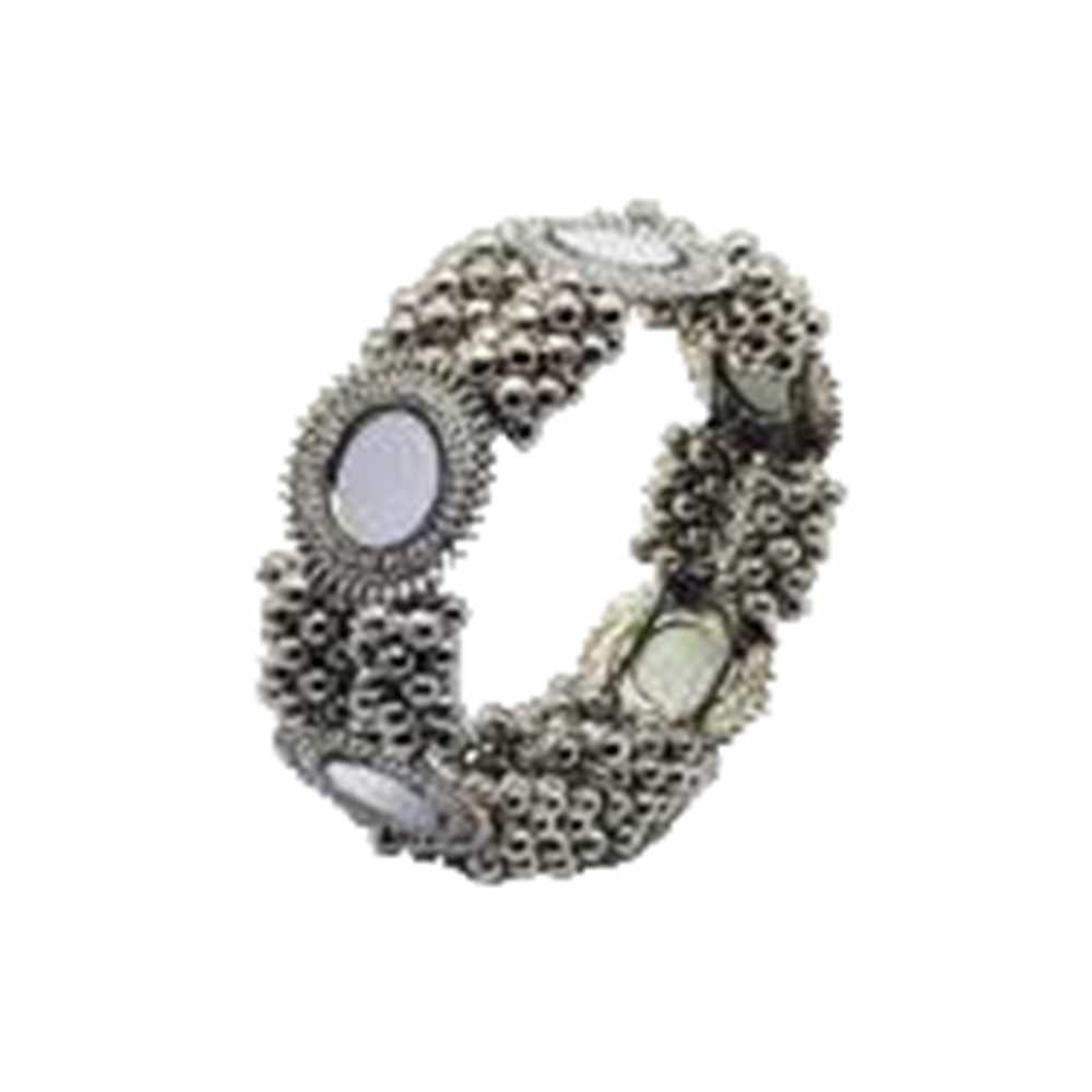 - Product Particulars: This bracelet is made of high quality material plated with silver oxidized and studded with beads and stones.