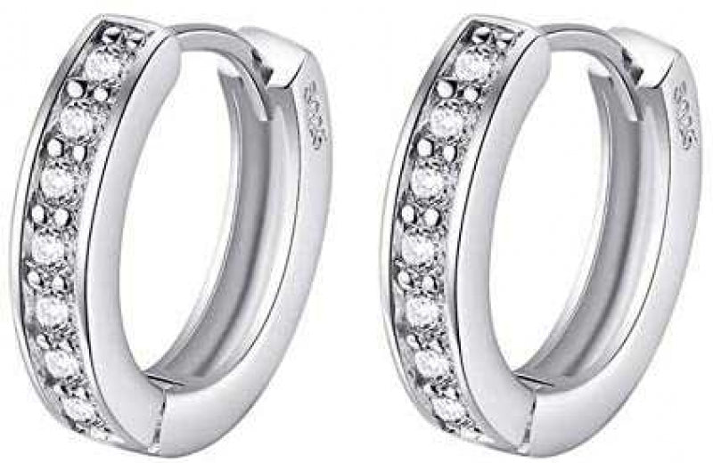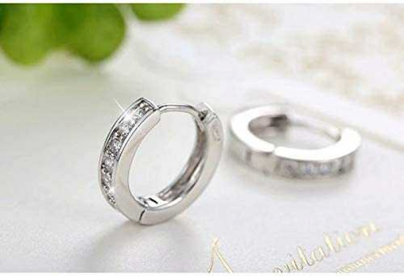 Women's Silver Plated Zircon Studded Hoop Earrings With Hinged Snap