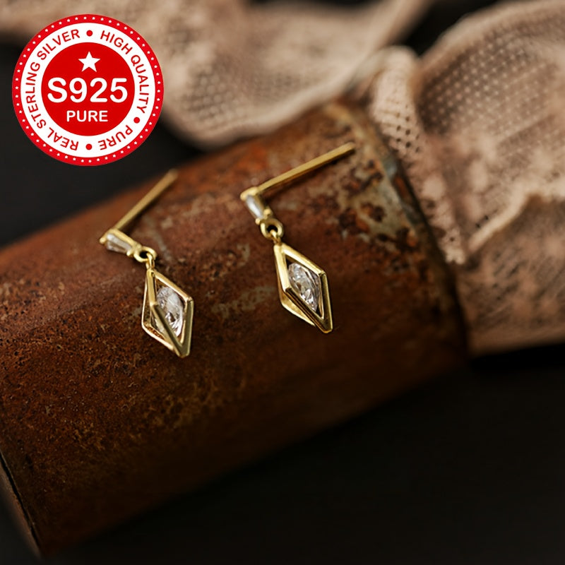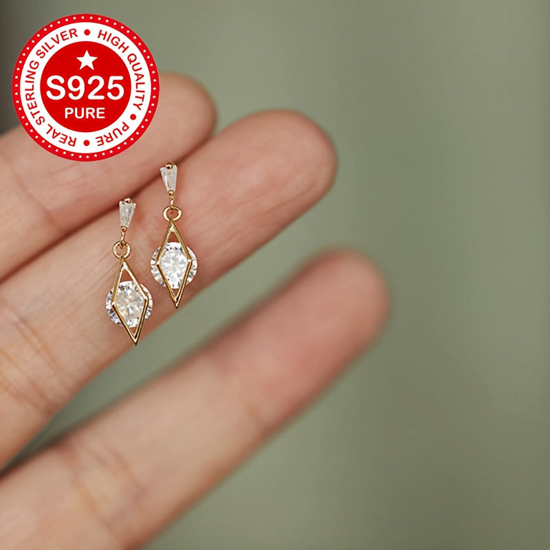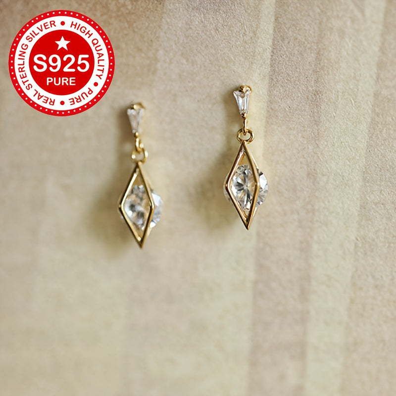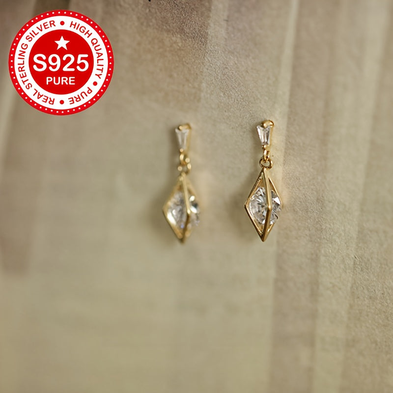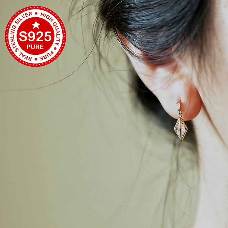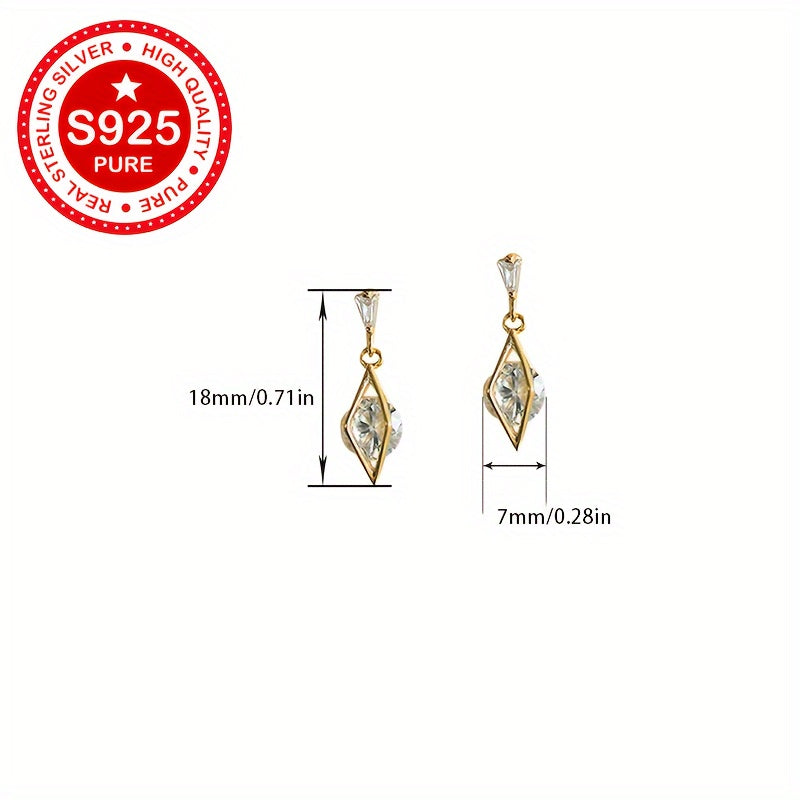 These stud earrings are made of 925 sterling silver with 18K gold plating and feature synthetic cubic zirconia in a geometric faceted design. They are hypoallergenic and lightweight, weighing only 1.81g. Perfect for everyday wear.