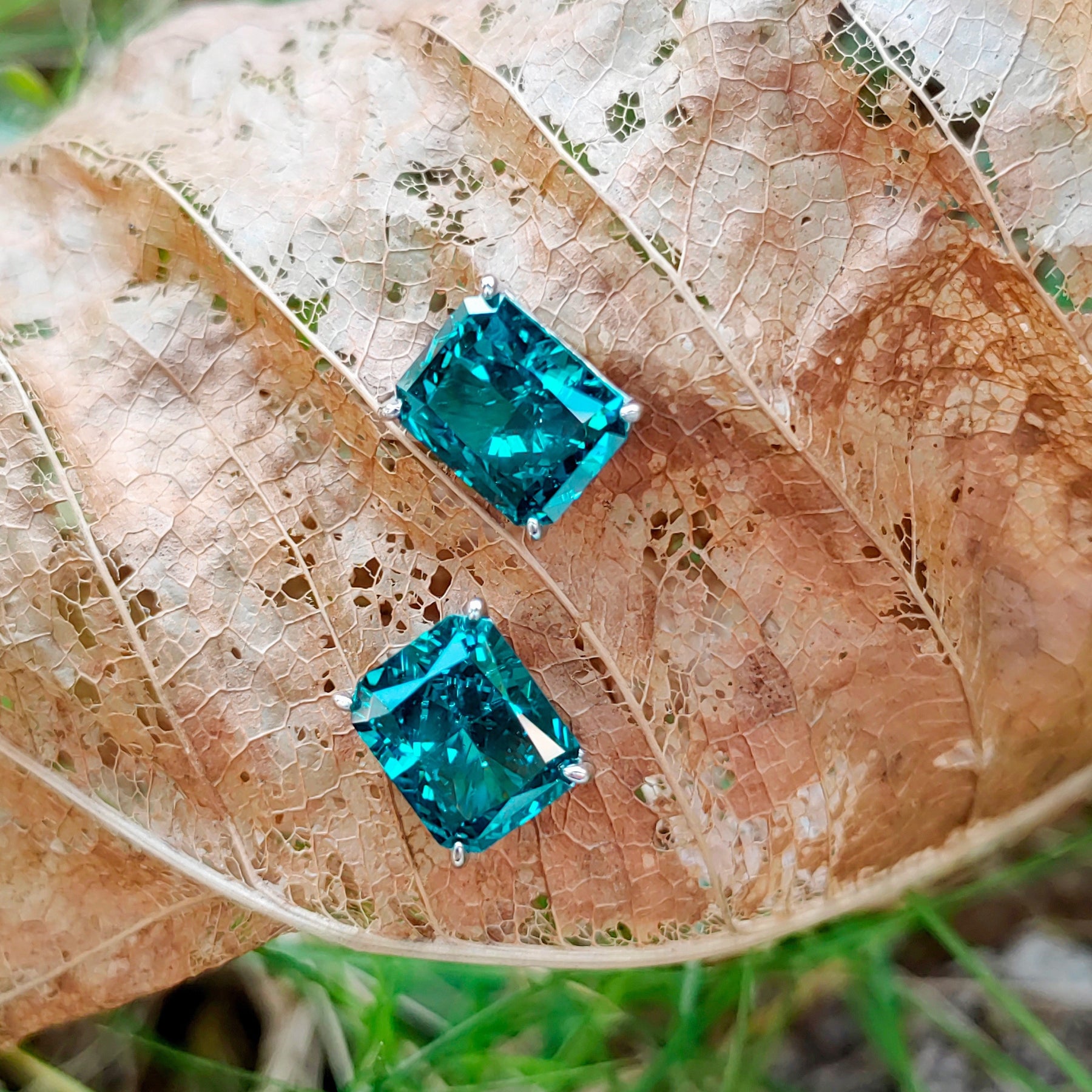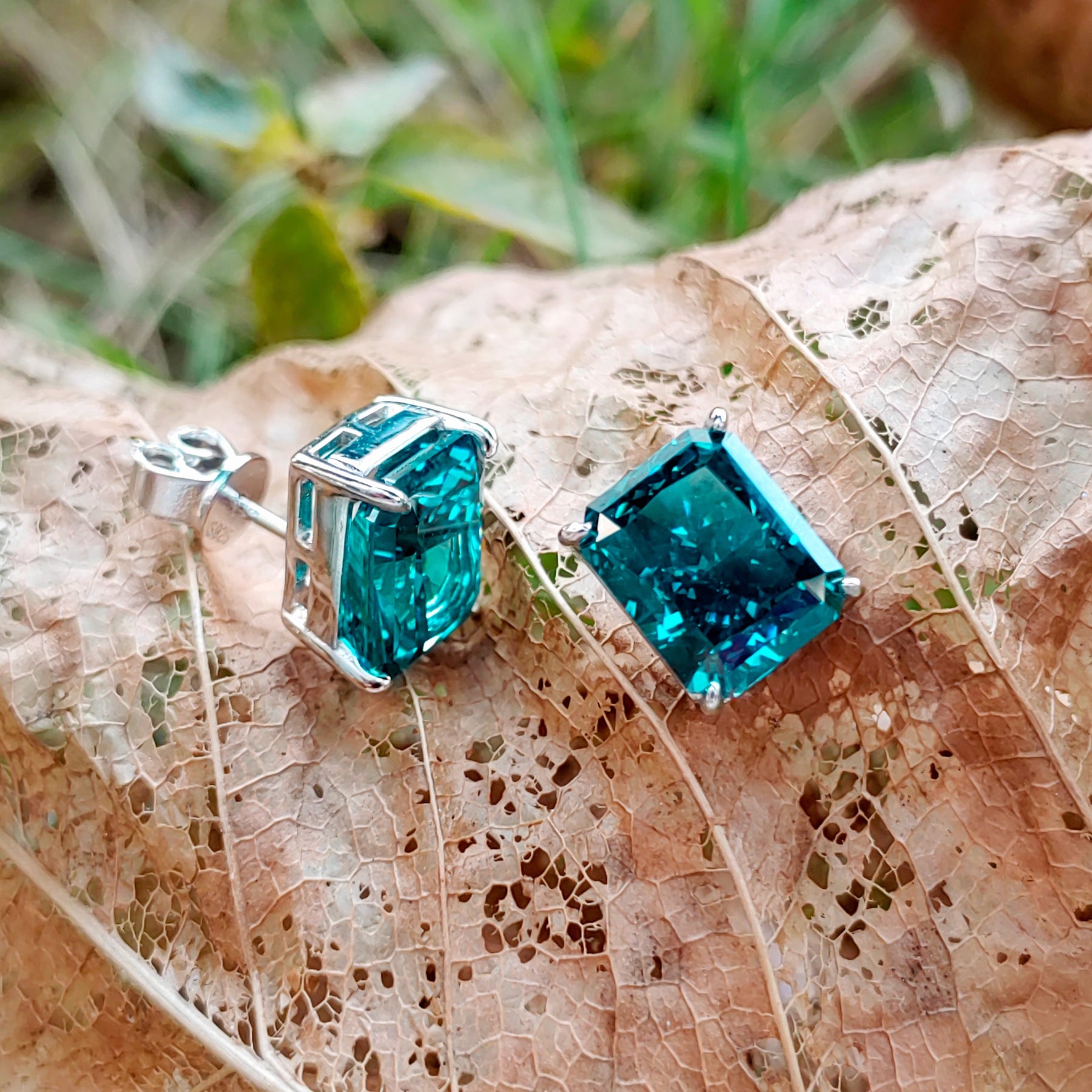 7 Ct Bluish Ink CZ Stud Earrings S925 Silvery & Golden Fine
