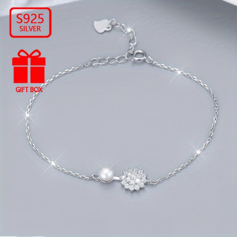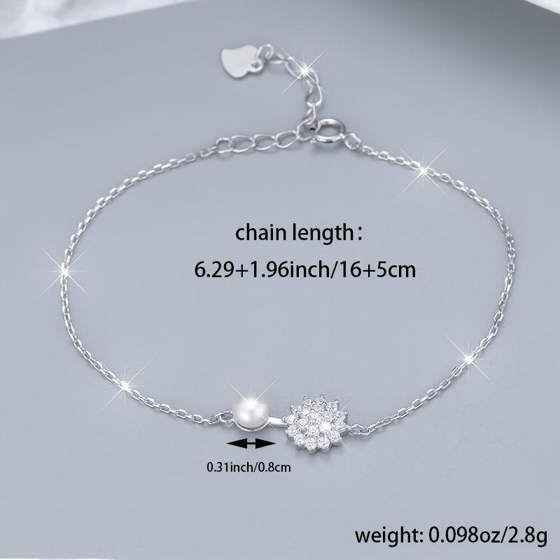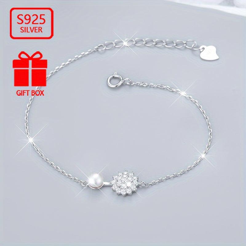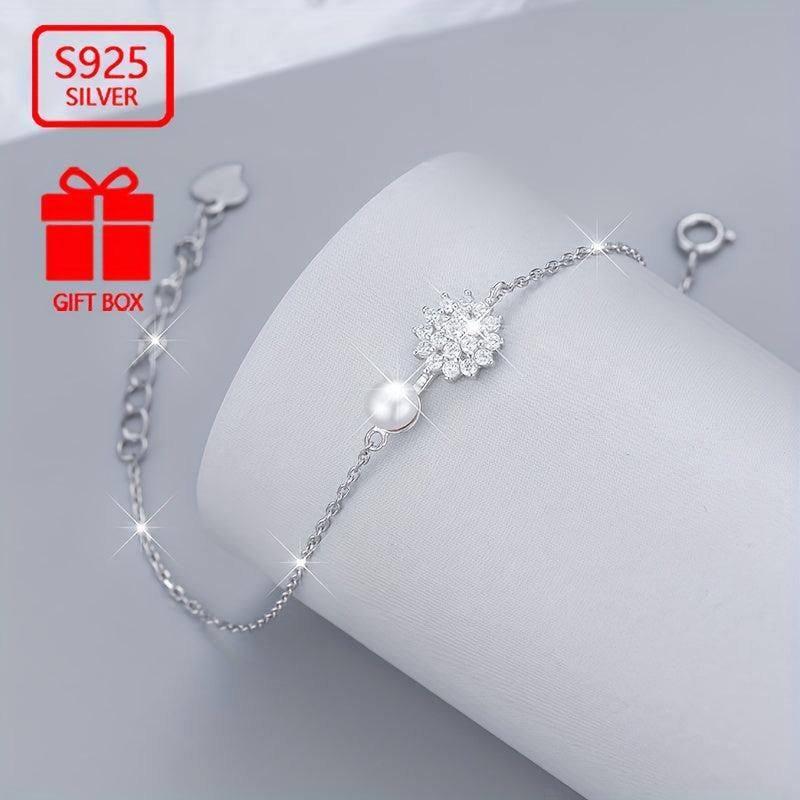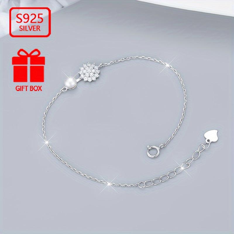 925 Pure Silvery Imitation Pearl Snowflake Bracelet Hand Ornament