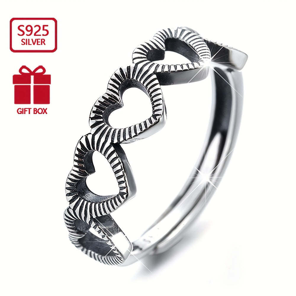 This silvery ring features a retro design with a hollow heart open adjustable style. Perfect for daily commuting wear, this ring is a must-have hand accessory.