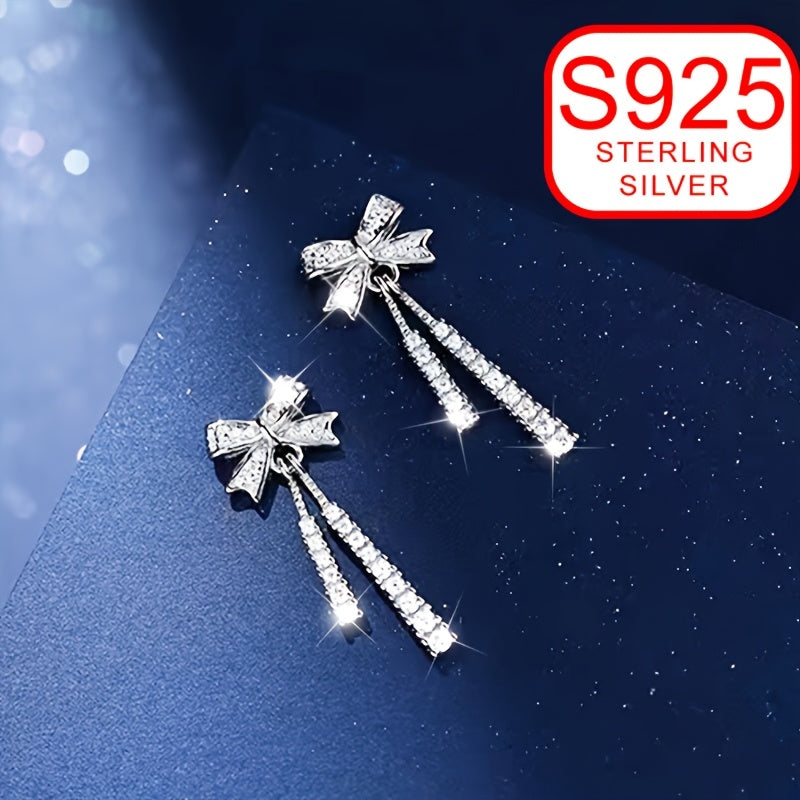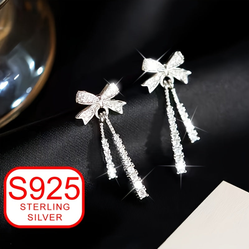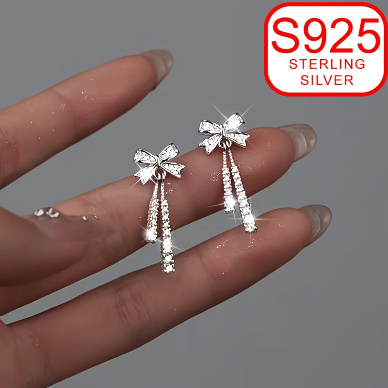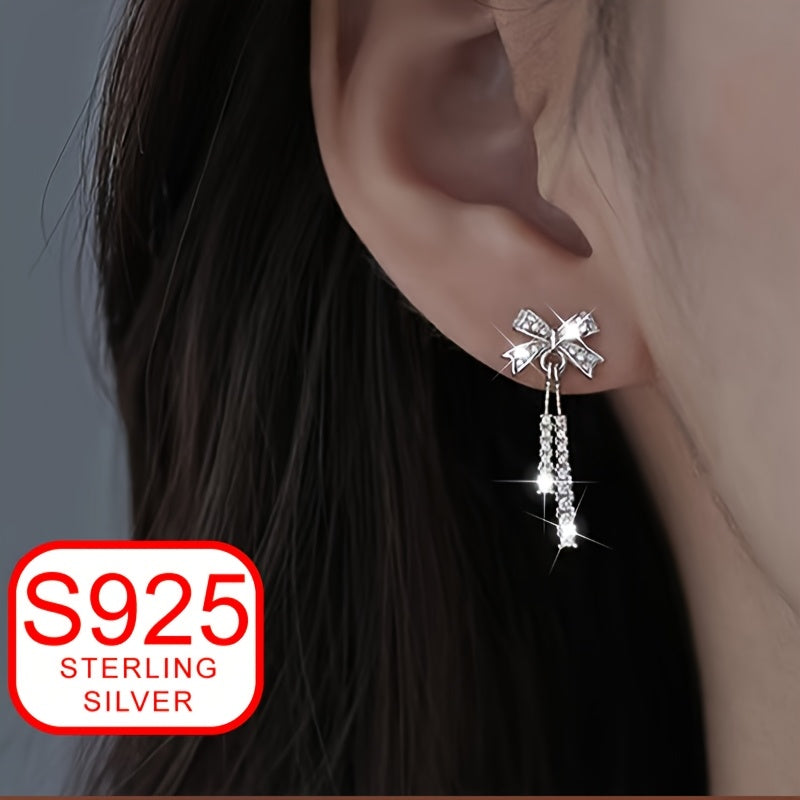 Add a touch of elegance to your summer beach outfits with these stylish drop earrings inspired by ballet. Made of high-quality 925 silver, these earrings feature a delicate bow design with tassels that will make you stand out.