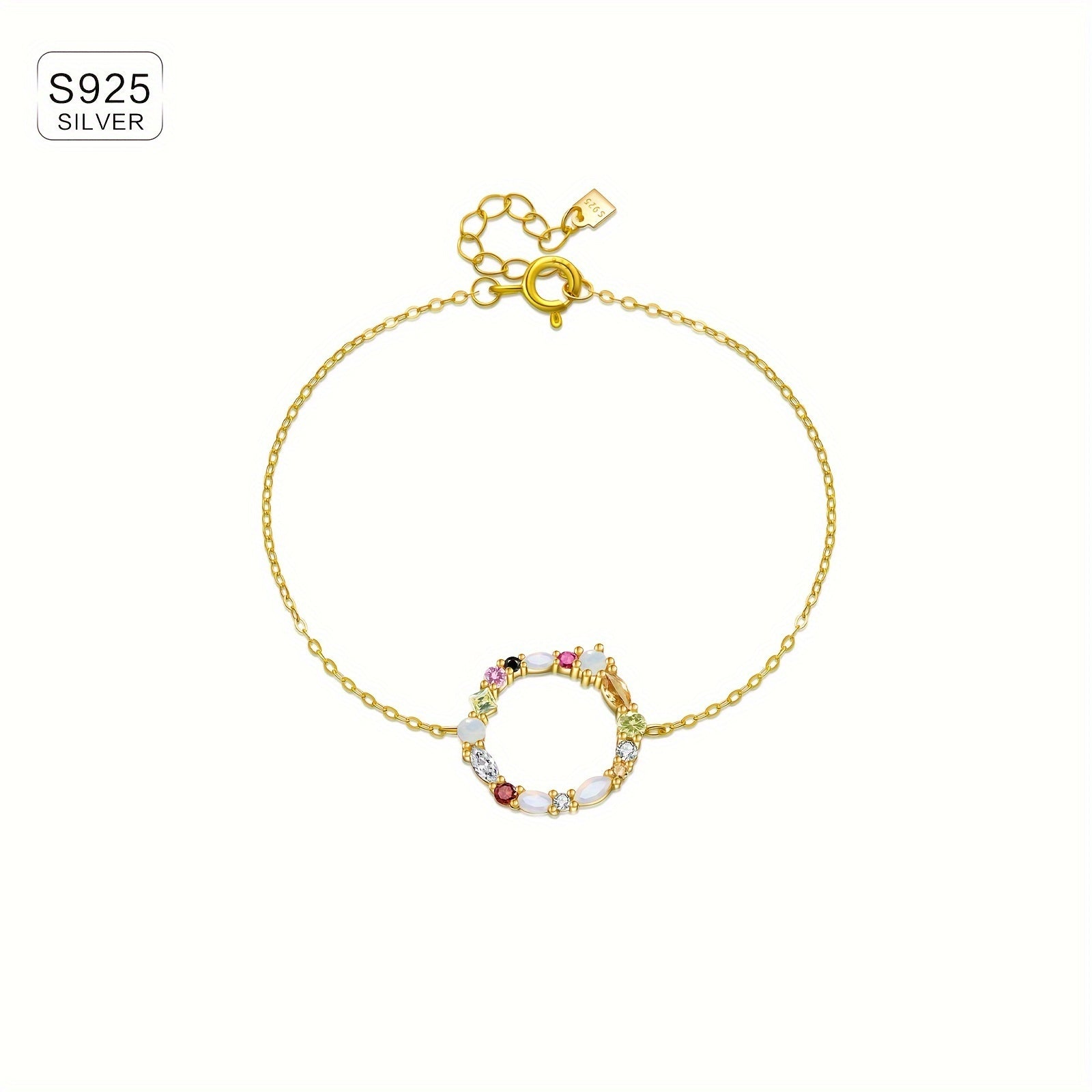 Add a pop of color to your outfit with this stunning 925 sterling silver bracelet featuring vibrant cubic zirconia stones. Perfect for parties and vacations, this bracelet is a great gift for your girlfriend.