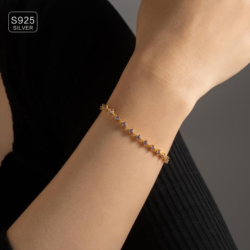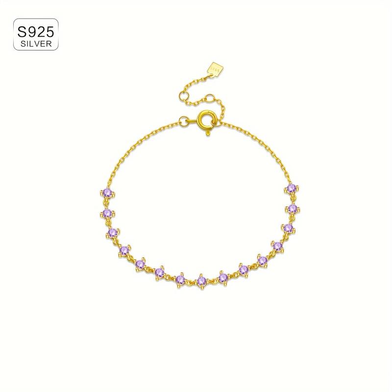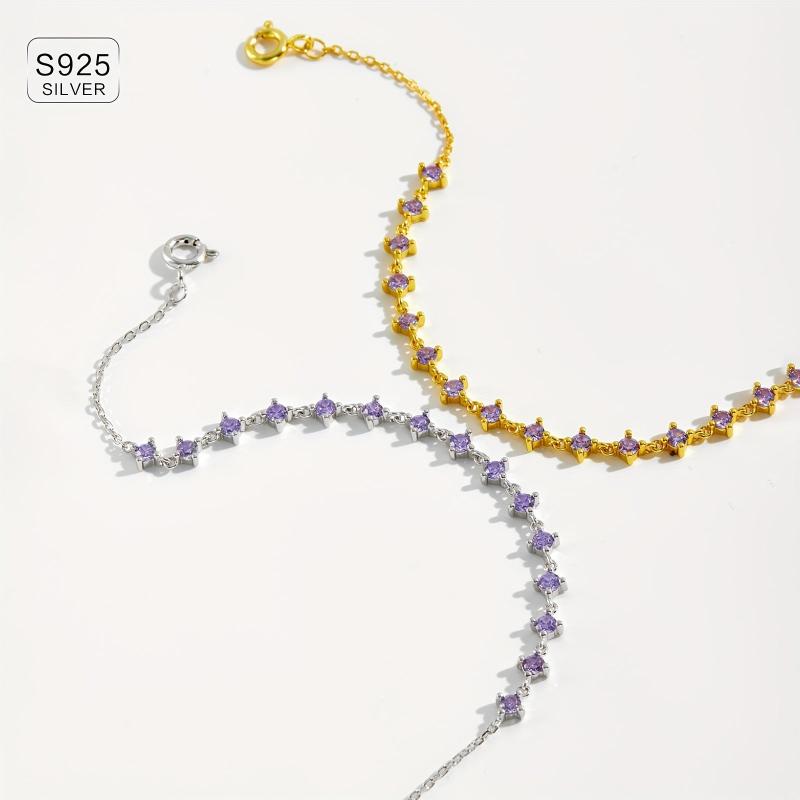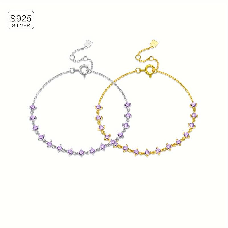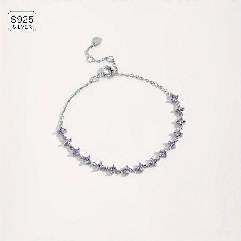 925 Silver Bracelet with Purple Cubic Zirconia for Women