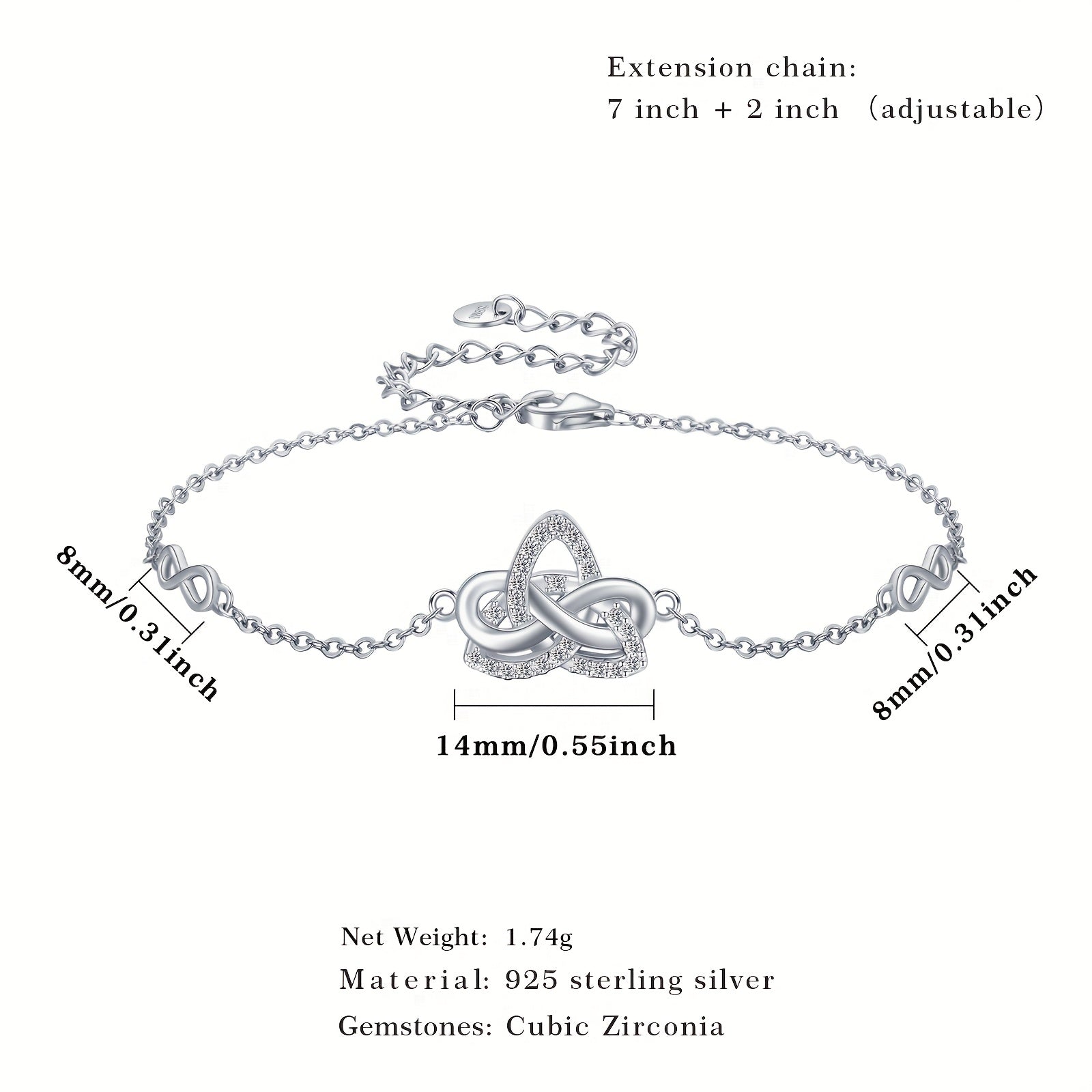 925 Silver Celtic Bracelet with Infinity Symbol & CZ Knot Anklet Jewelry Gift