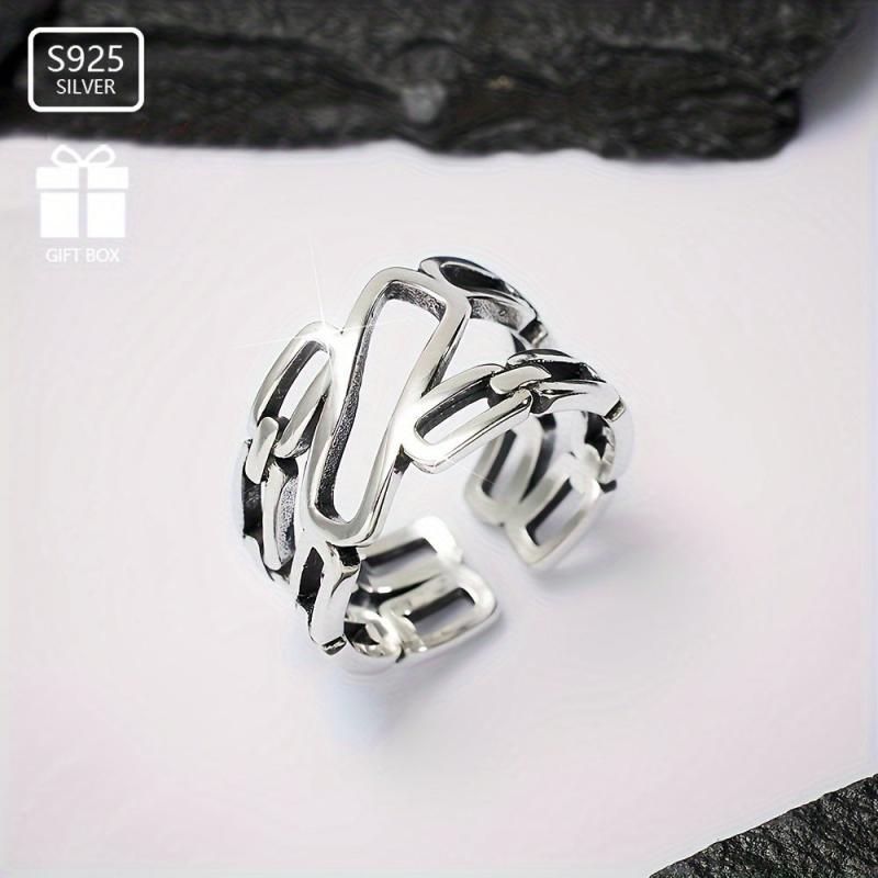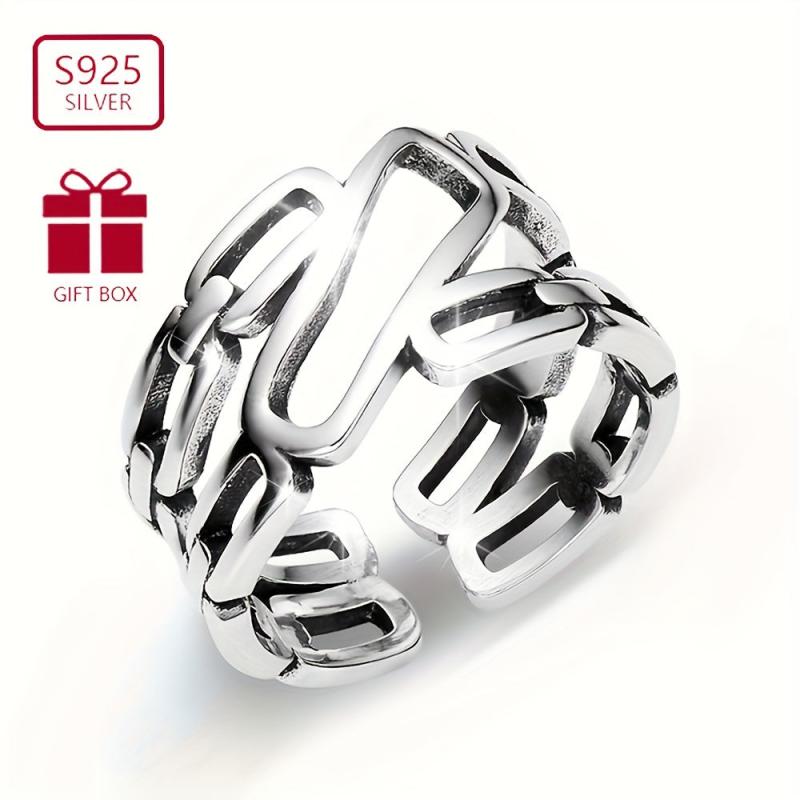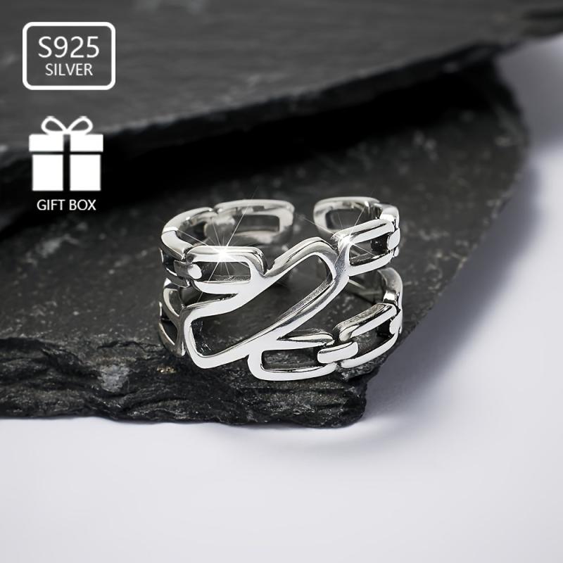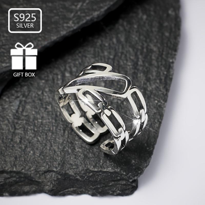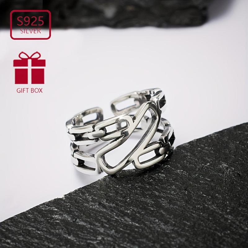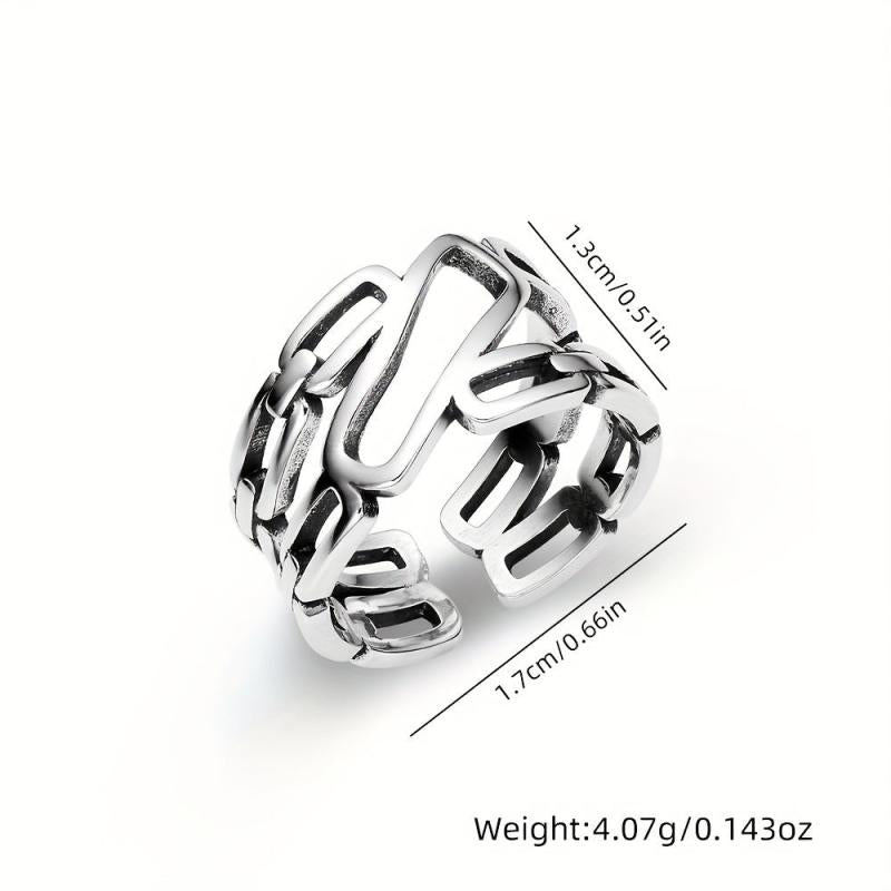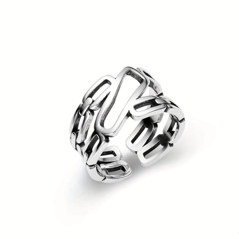This unique and heavy work ring is made of 925 sterling silver. It features a double layer irregular chain design, perfect for both men and women.