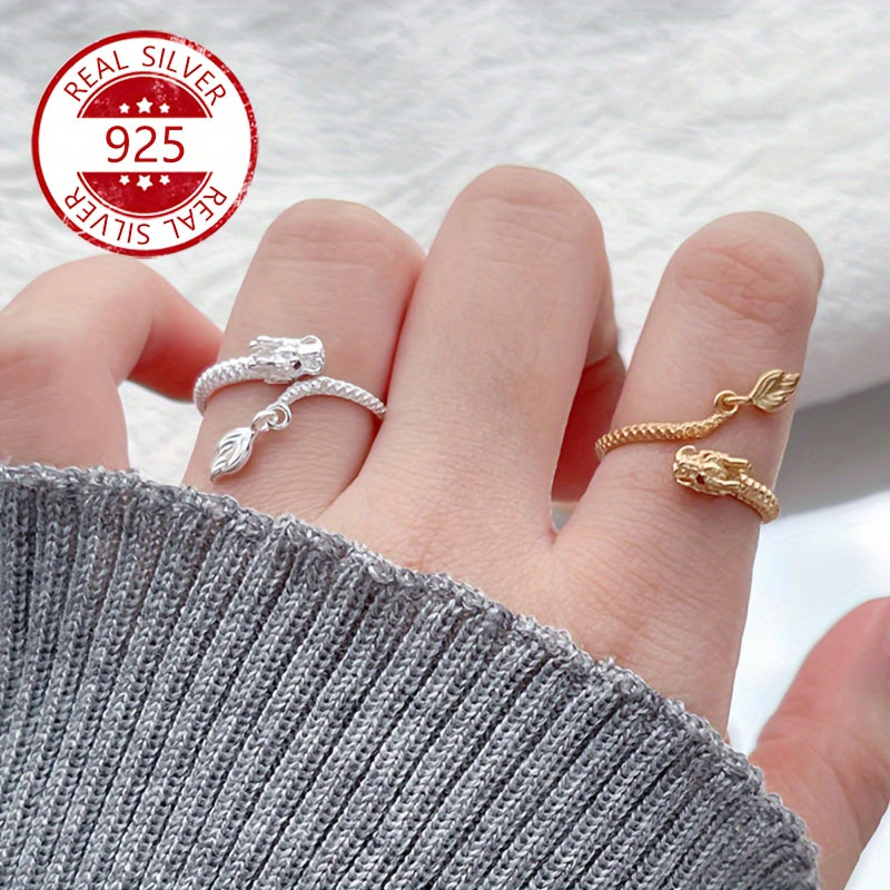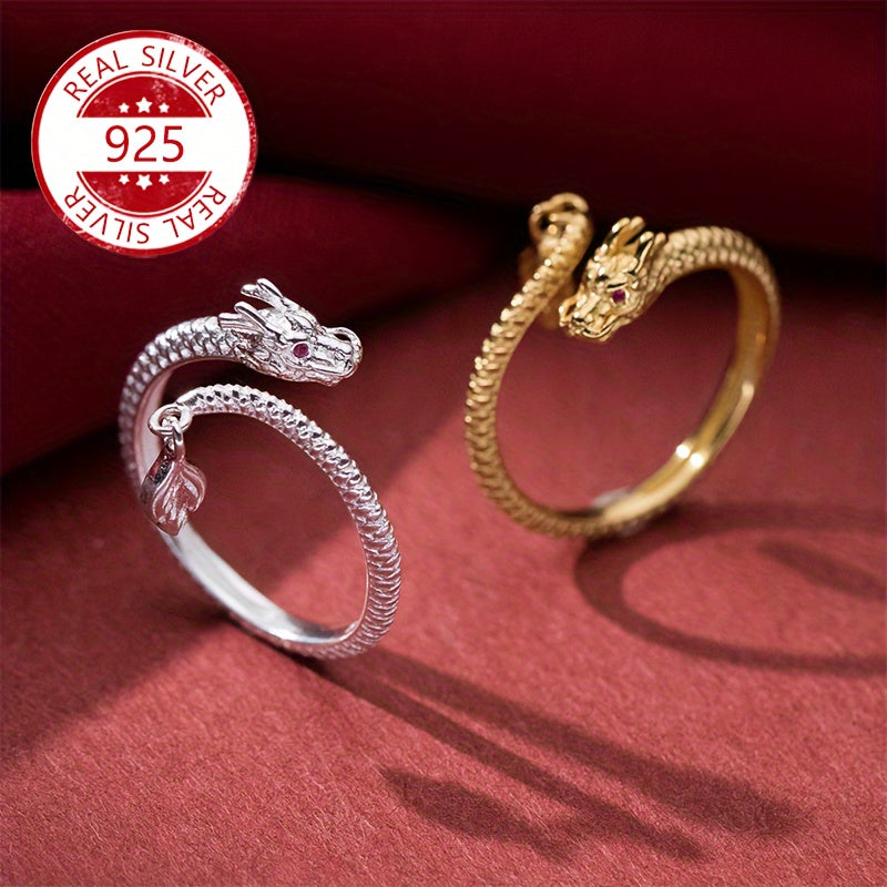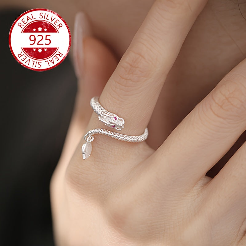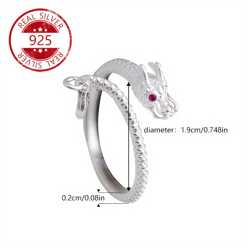 This 925 silver ring features a detailed carving of a dragon tail, suitable for both men and women. It is anti-allergic and adjustable, making it a perfect gift or accessory for any occasion.