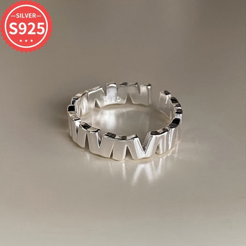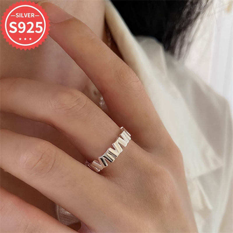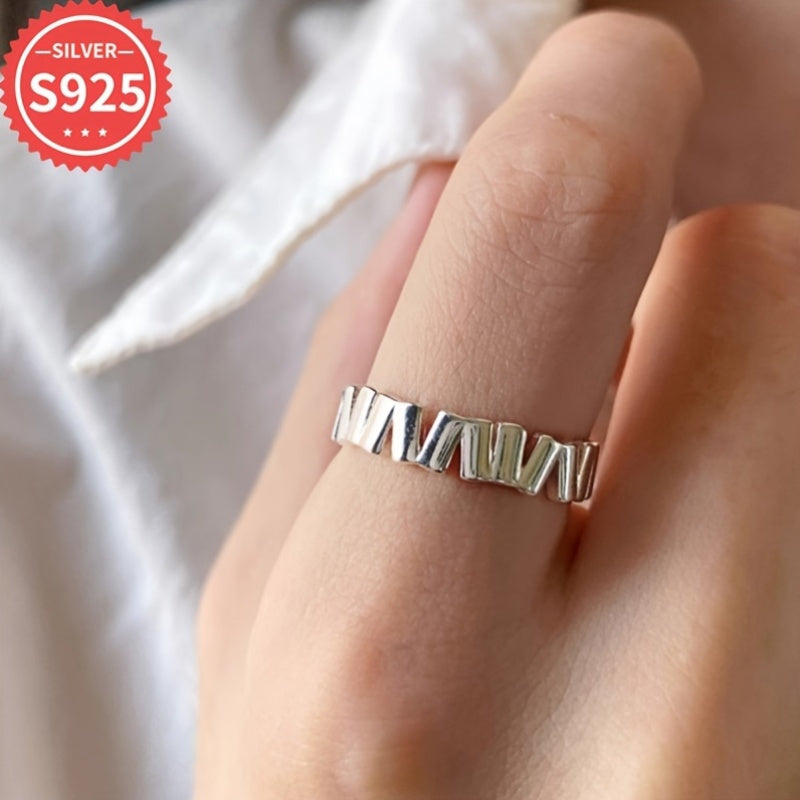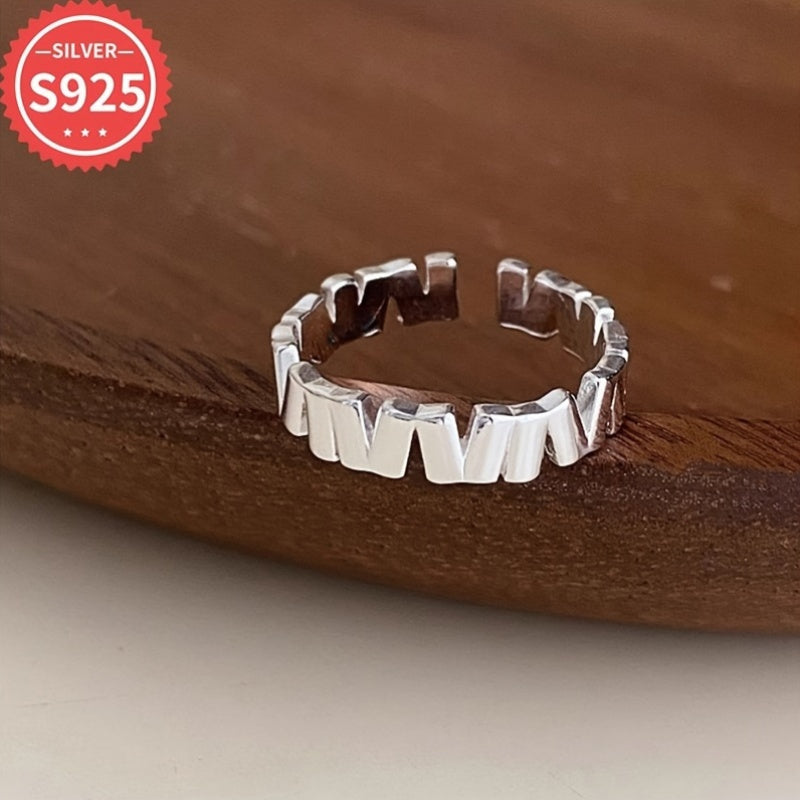 Add a touch of elegance to your look with this 925 silver geometric stripe ring. The open band design and vintage style make it a standout accessory. Hypoallergenic and suitable for everyday wear.