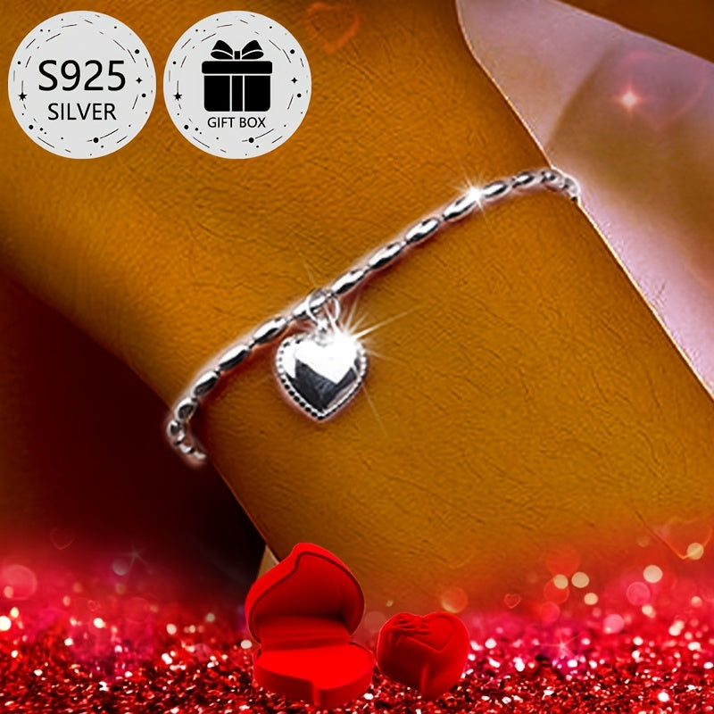 This 925 sterling silver bracelet features a heart charm design that is perfect for various occasions including mother's day, back to school, weddings, and parties.
