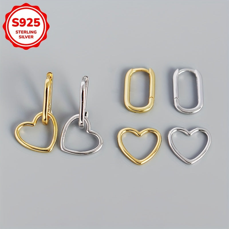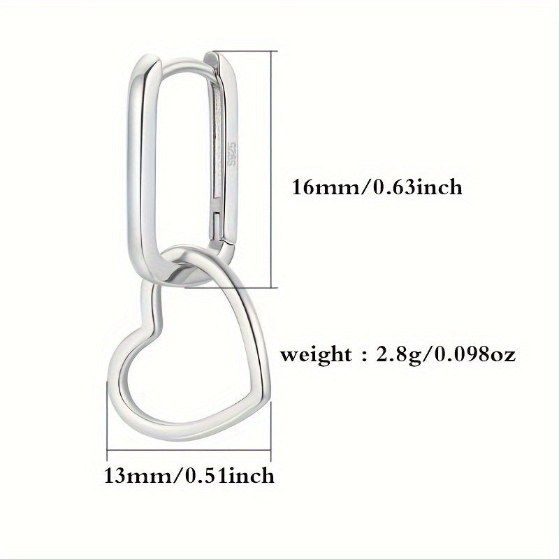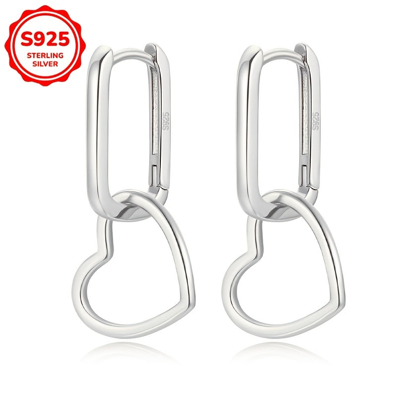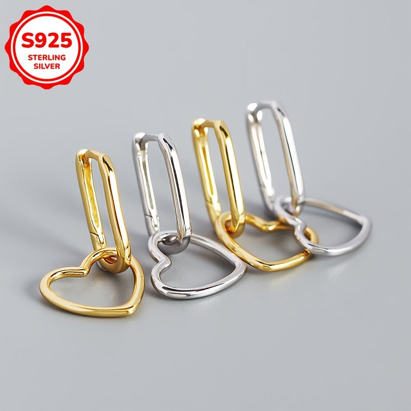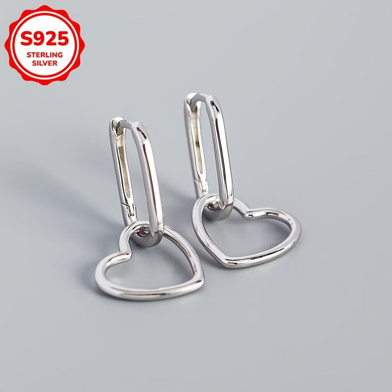 Elevate your style with these heart-shaped dangle earrings made of 925 sterling silver. Perfect for everyday wear or as a thoughtful gift.