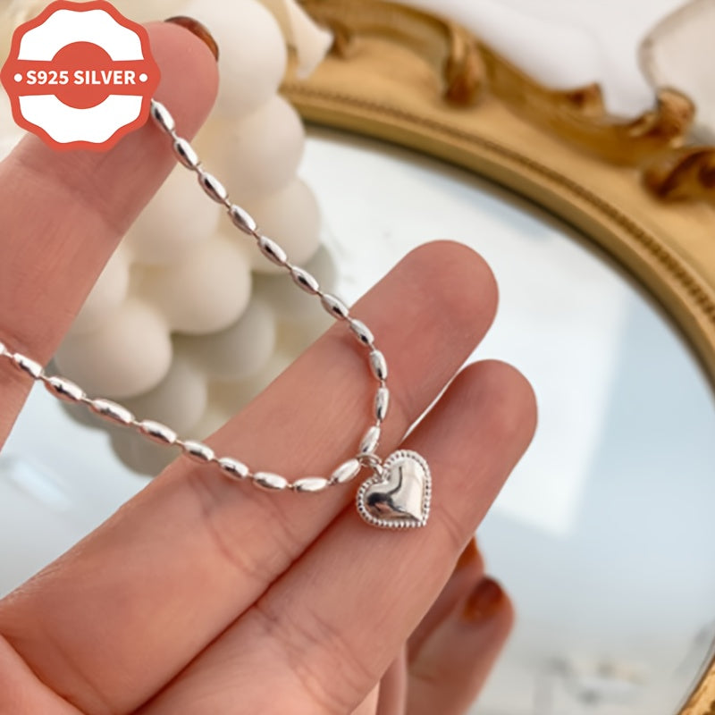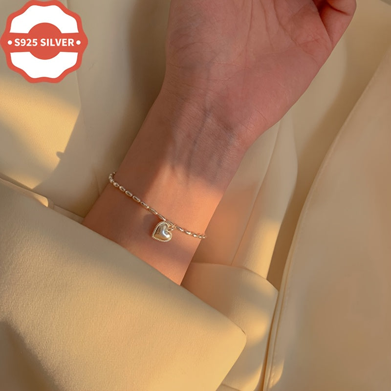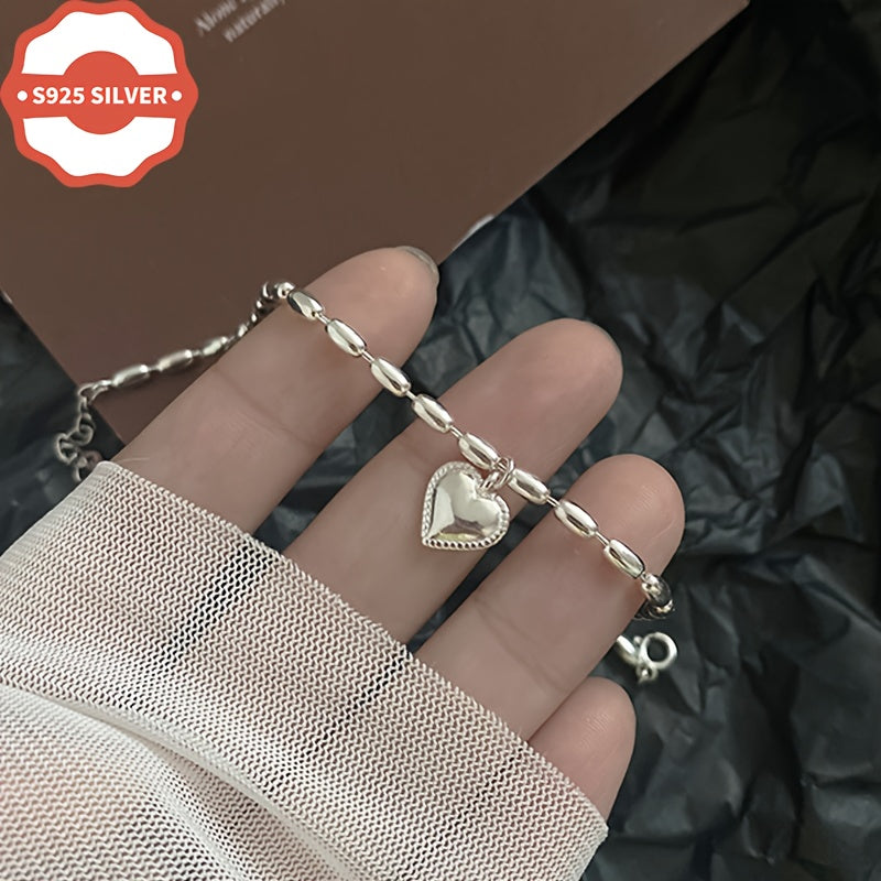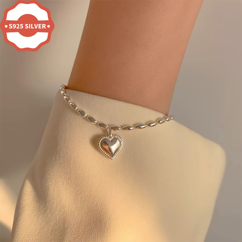 This 925 sterling silver charm bracelet features a heart pendant in a vintage style design. Hypoallergenic and suitable for daily wear or as a gift for Thanksgiving occasions. Anti-oxidation properties ensure long-lasting shine. Comes in a gift box.