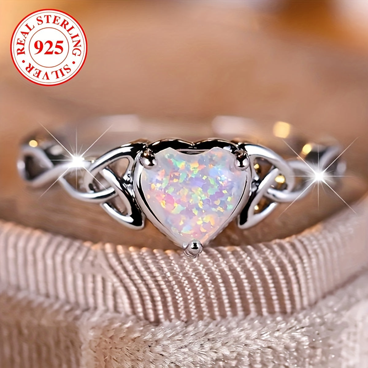 925 Silver Heart Ring with Synthetic Opal Ideal Gift