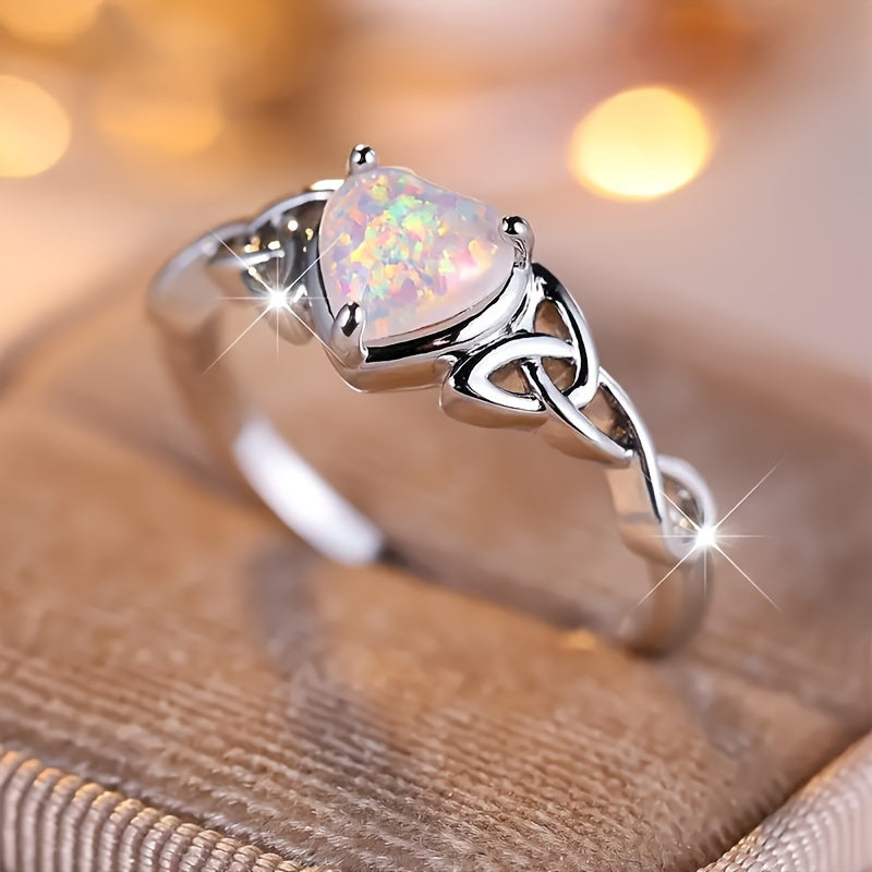 This stunning 925 sterling silver heart ring features a beautiful synthetic opal, making it a perfect choice for engagement or wedding bands. It is an ideal gift for her to express love and appreciation.