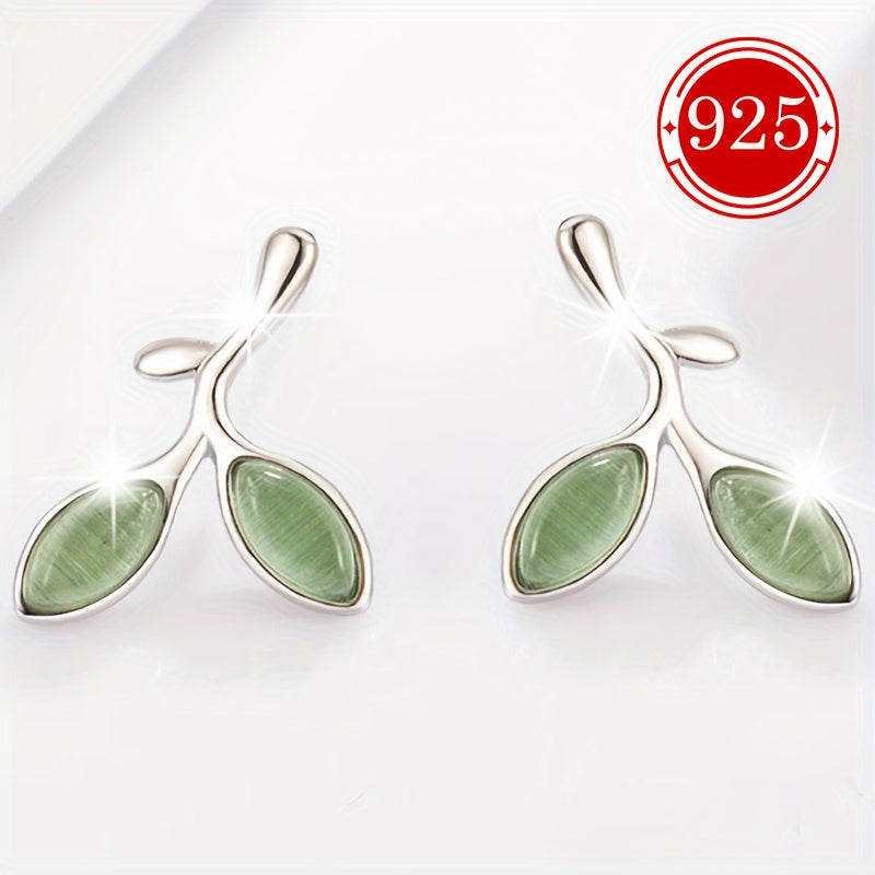 925 Silver Leaf Stud Earrings Hypoallergenic Golden Plated for Women