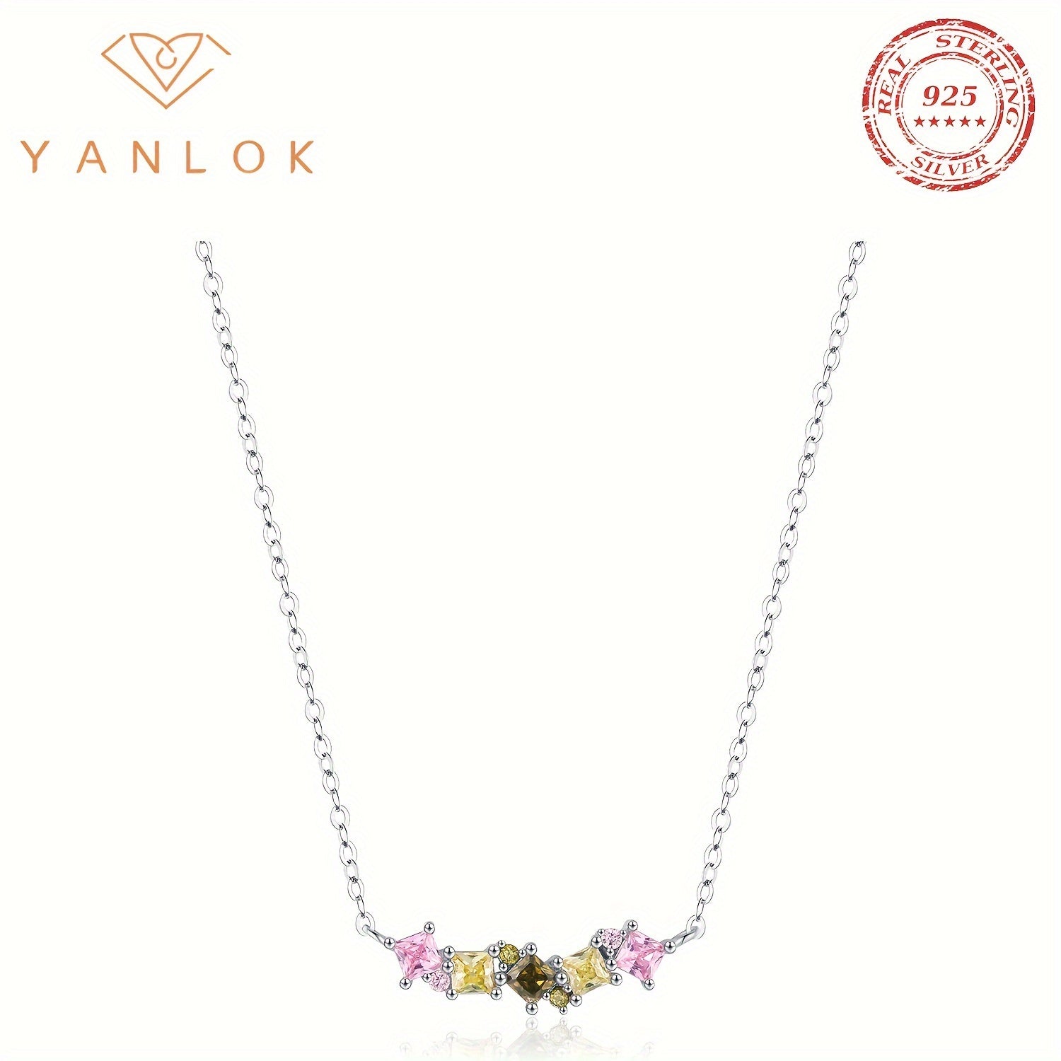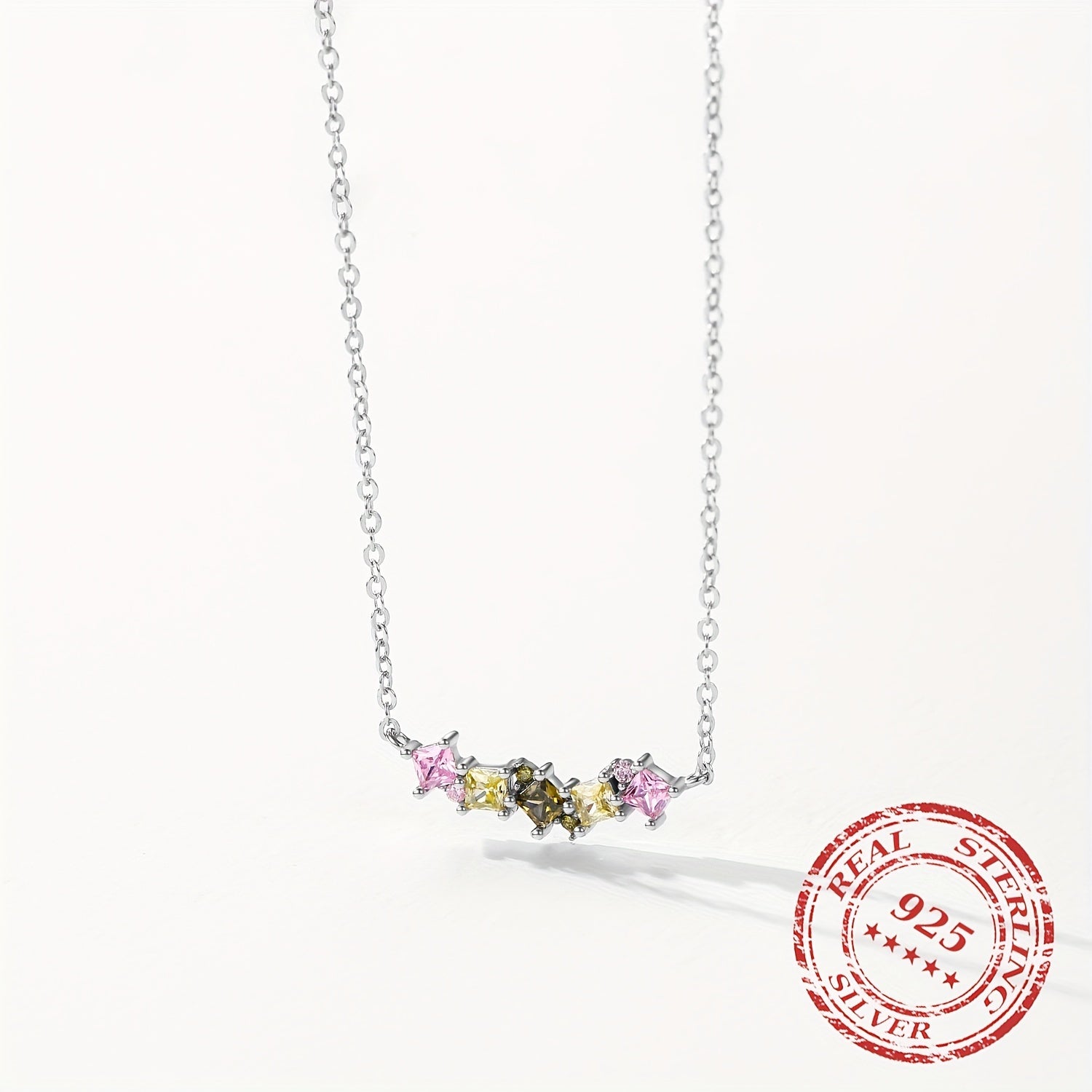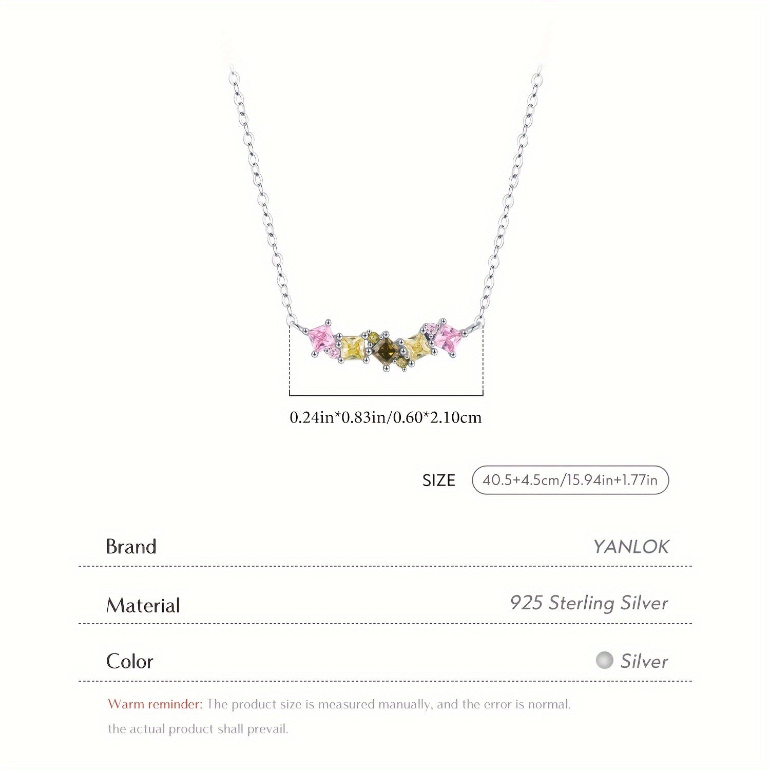 925 Silver Necklace Rainbow Candy Zirconia Pendant Link Chain Women