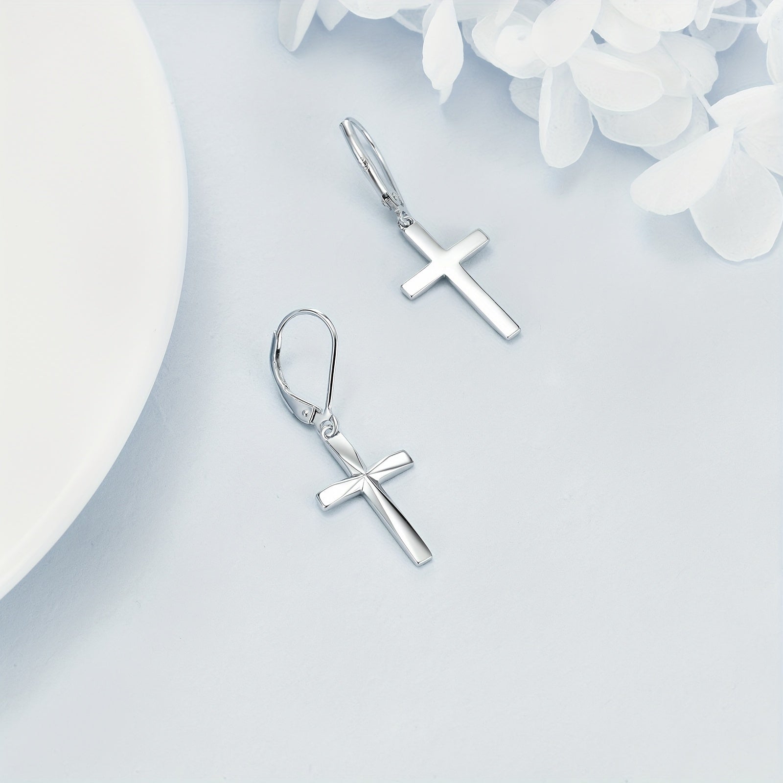 These stunning cross earrings are crafted from 925 sterling silver, featuring an origami design. Perfect for adding a touch of elegance to any outfit.