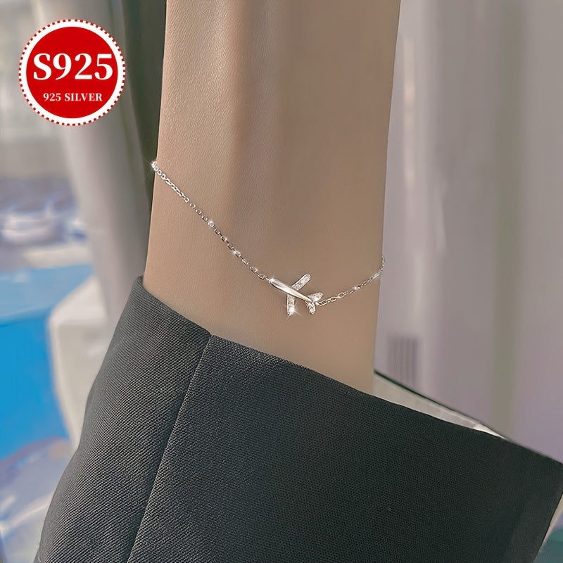 This stunning bracelet features a paper airplane design made of 925 silver with 18K gold plating and synthetic zirconia. It is hypoallergenic, anti-tarnish, and perfect for daily wear or as a Thanksgiving gift.