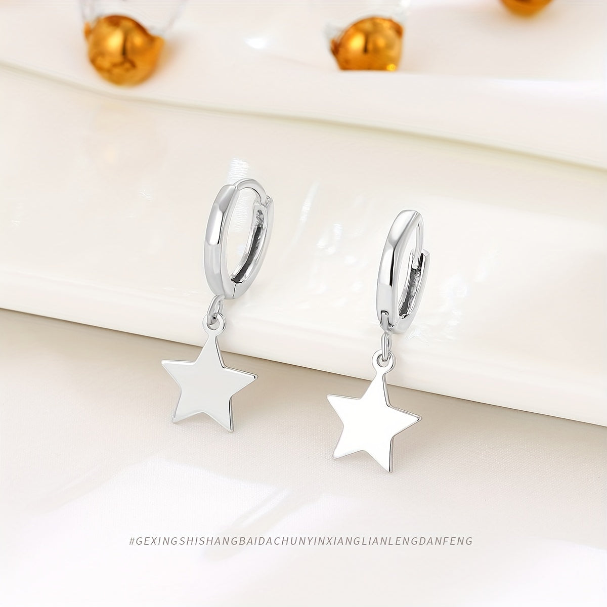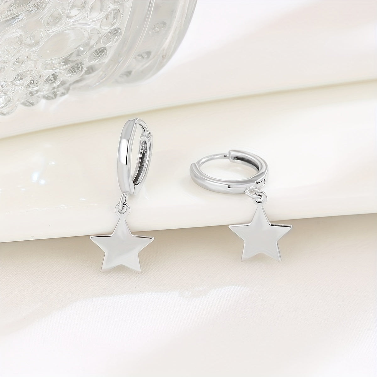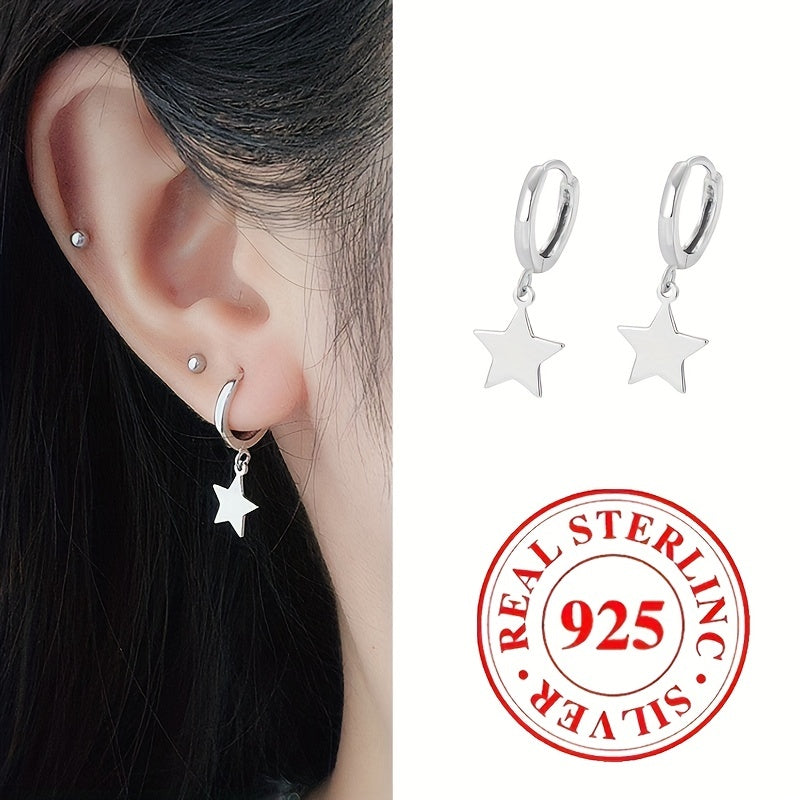 These hypoallergenic hoop earrings feature a classic pentagram pendant in sterling 925 silver, perfect for a delicate and stylish look. Ideal as a gift for women.