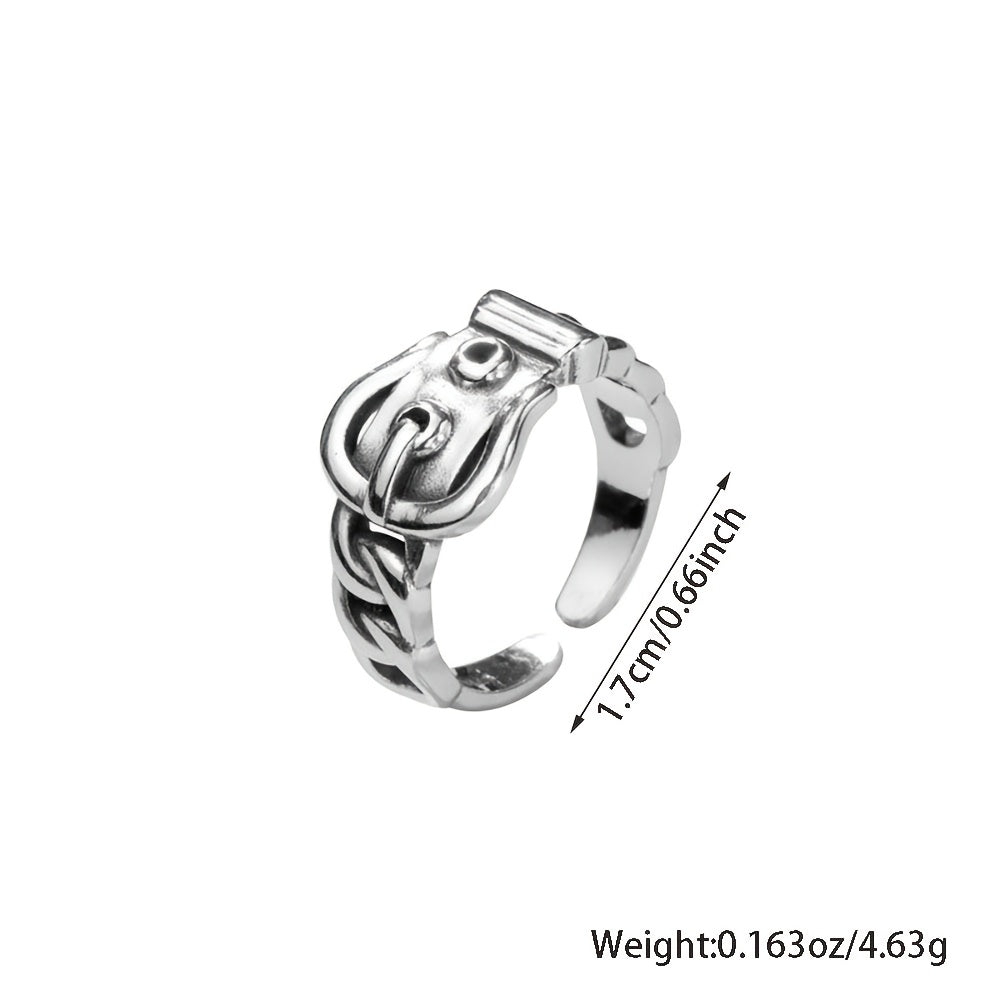 This open ring is made of pure 925 silver and features a retro hip hop belt strap design. It is adjustable and suitable for both men and women.