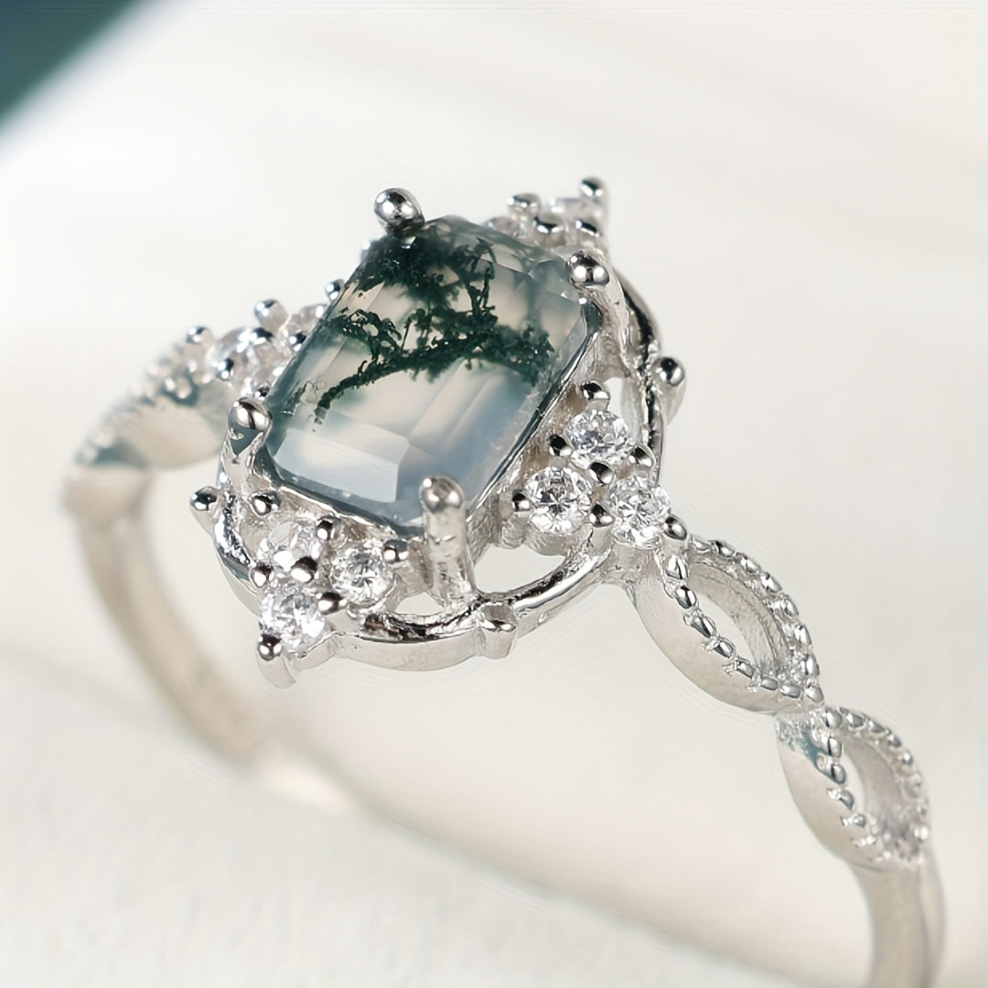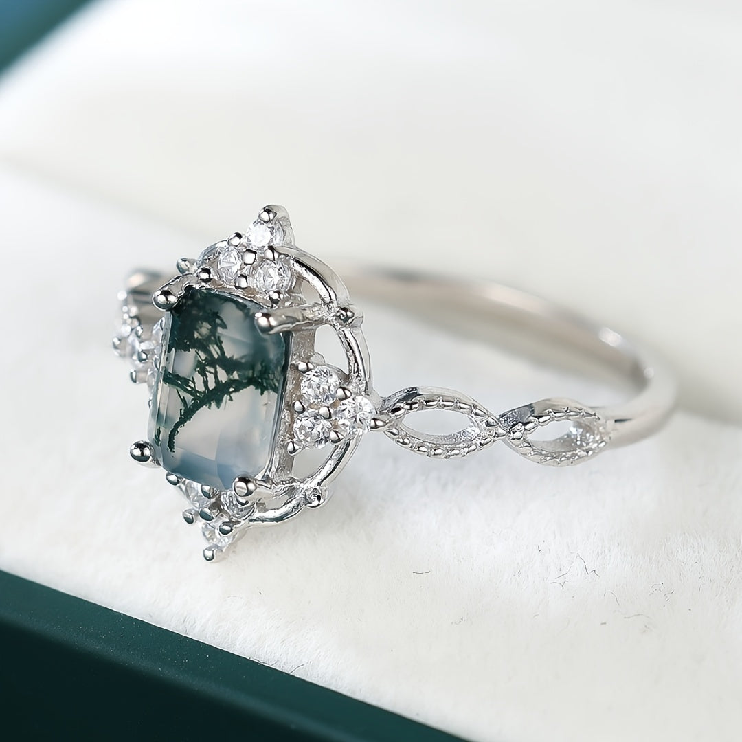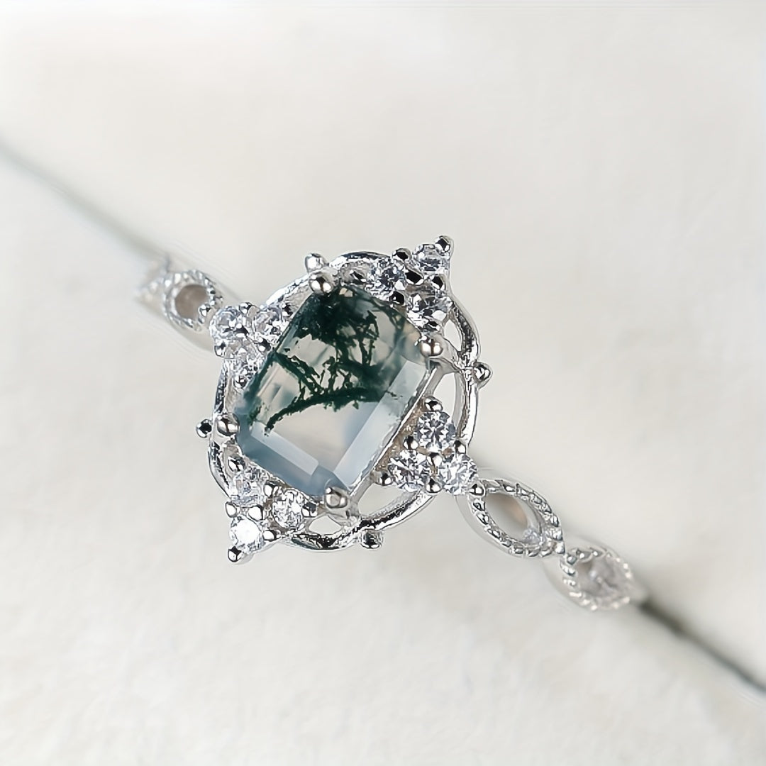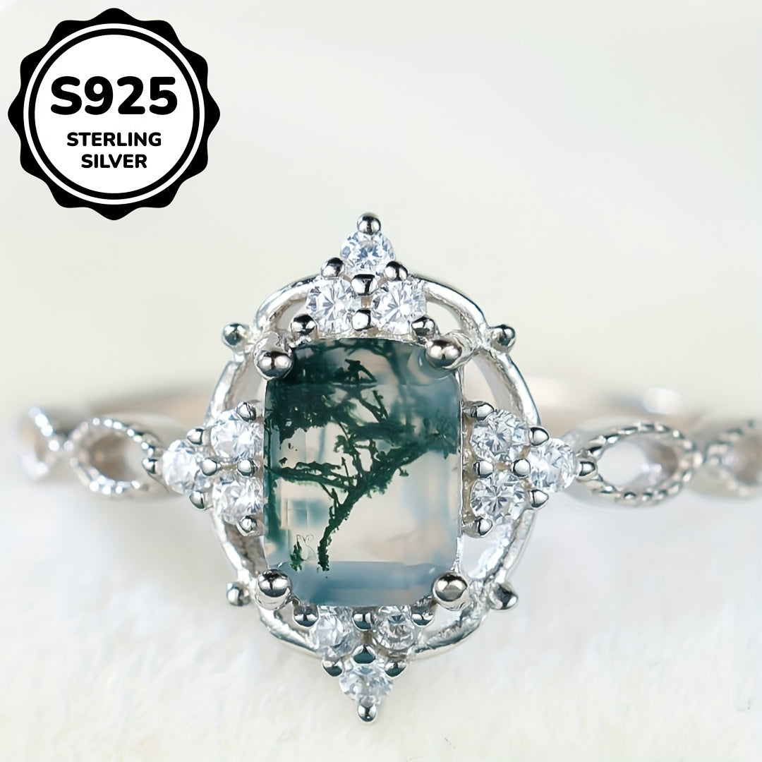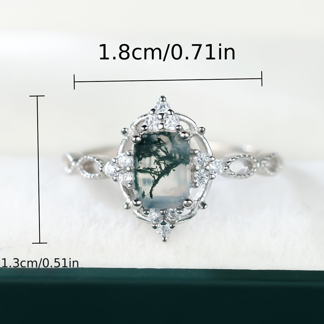 This 925 sterling silver ring features a beautiful water grass agate stone. It has a vintage and stylish design suitable for engagement or wedding. Perfect for all-season wear.