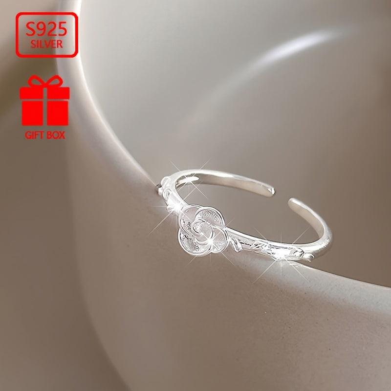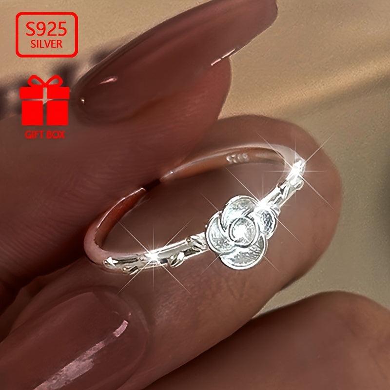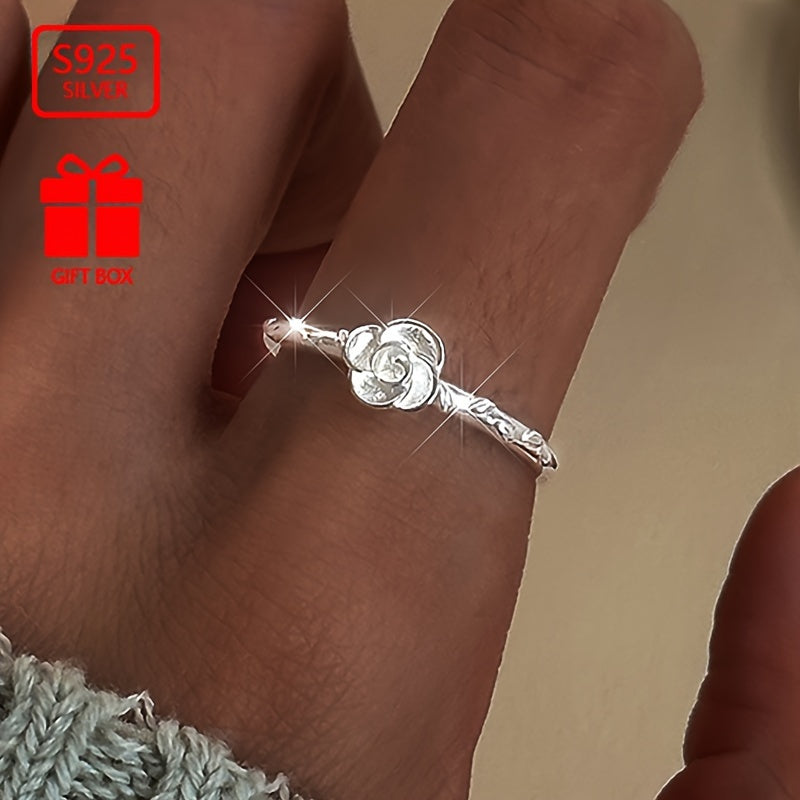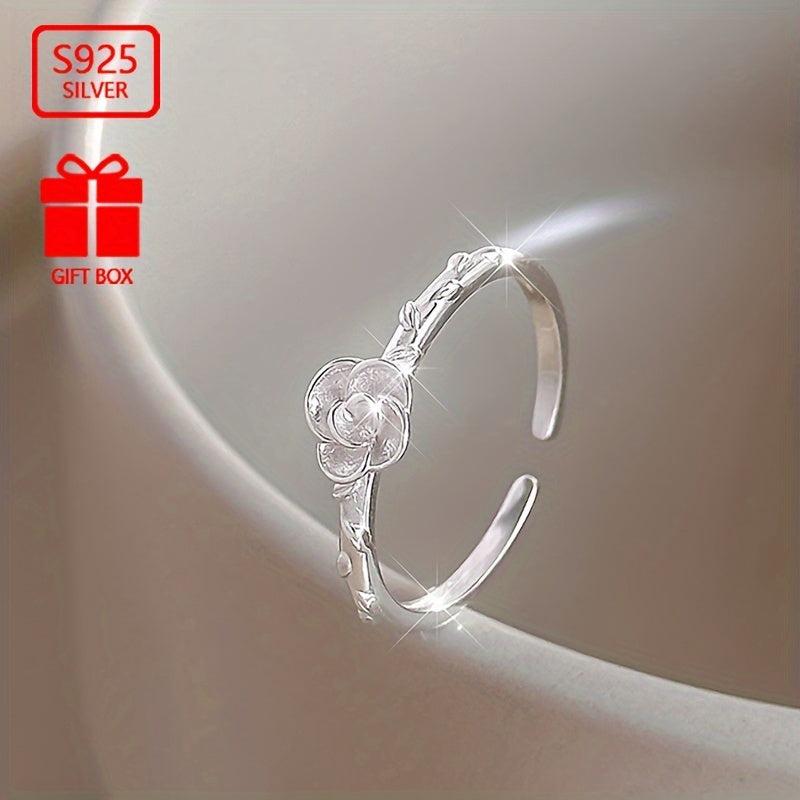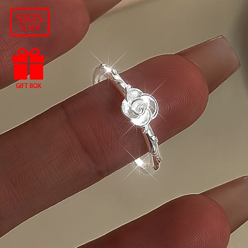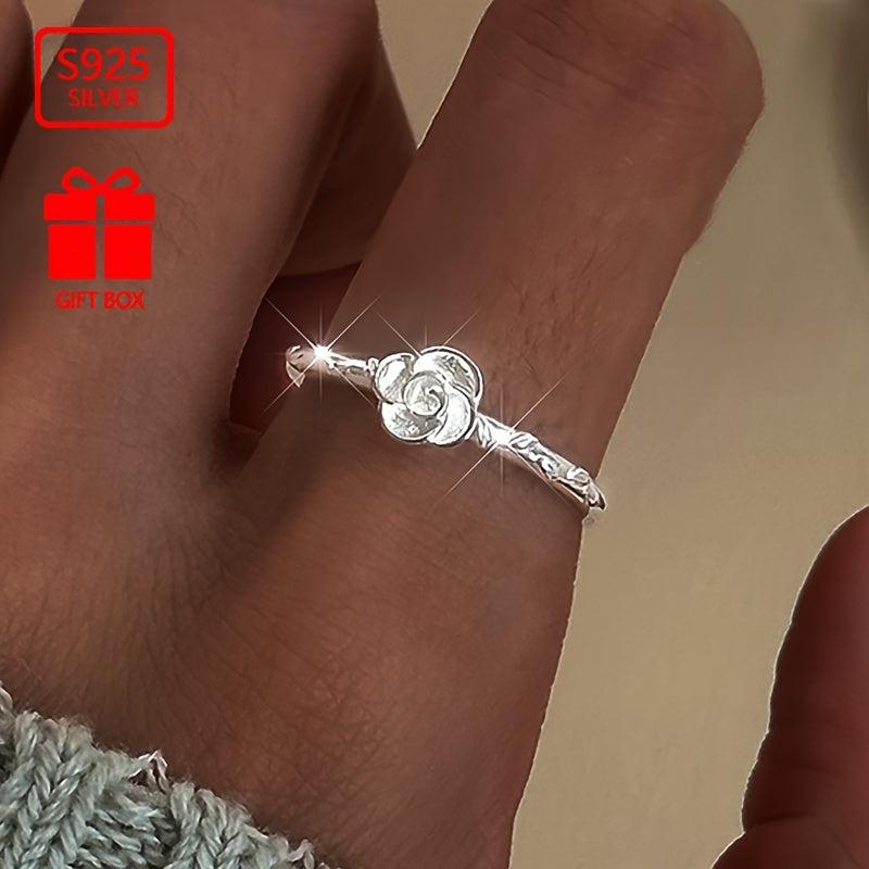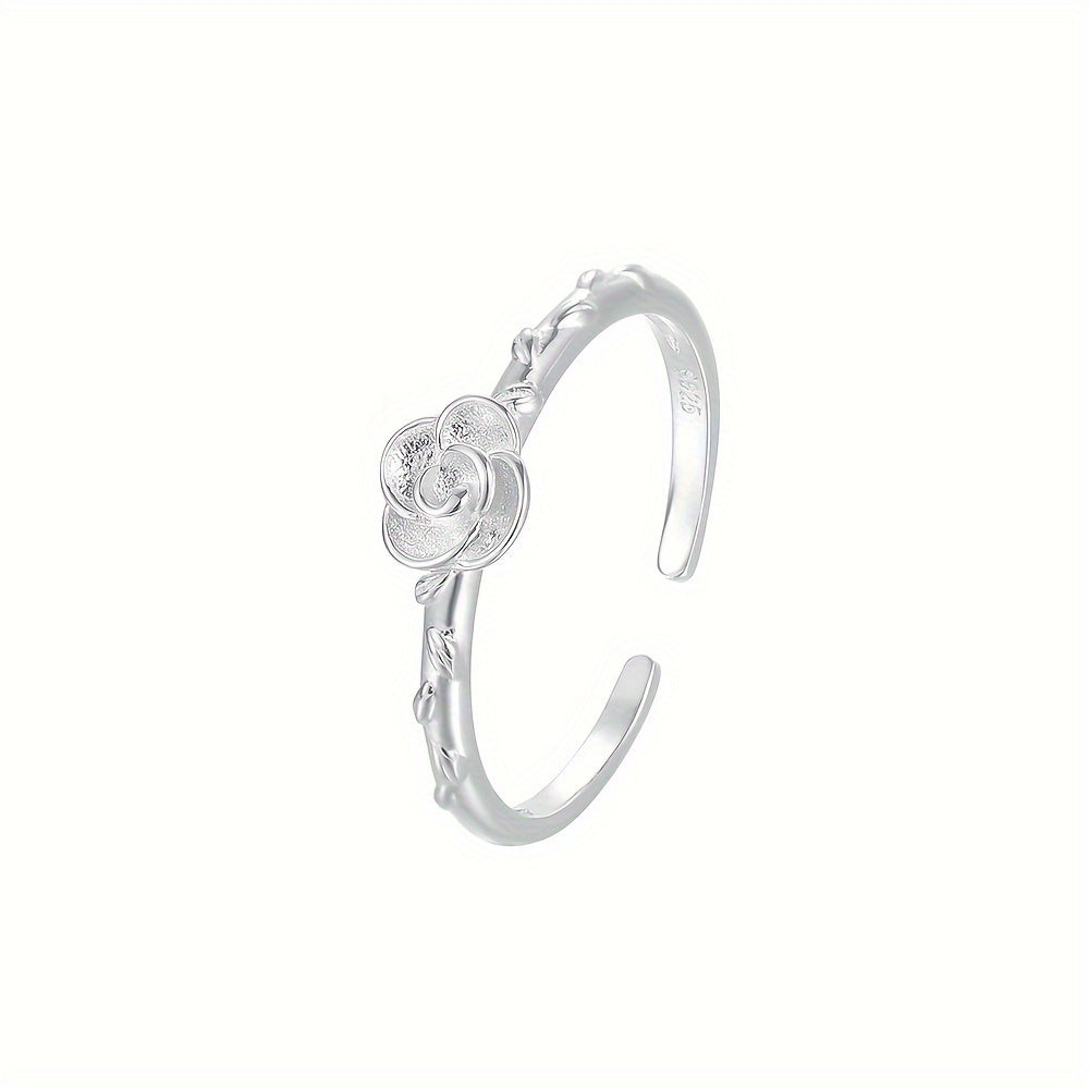 Add a touch of elegance with this 925 pure silver rose open ring. Perfect for daily wear or special occasions, this adjustable ring is a versatile accessory.