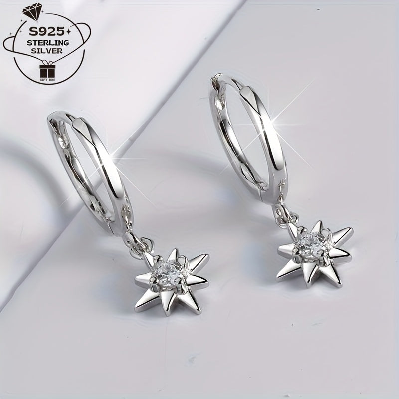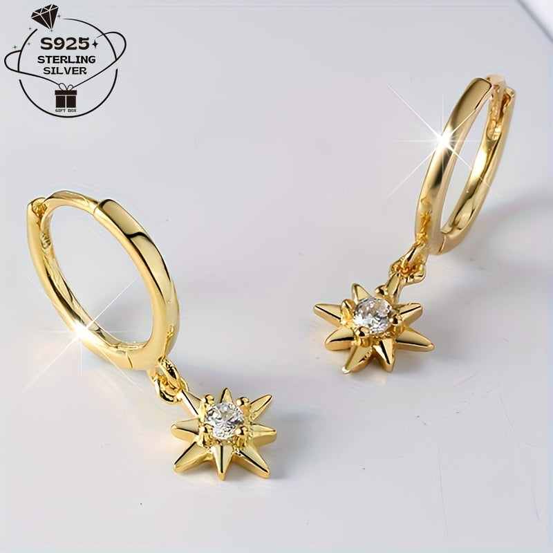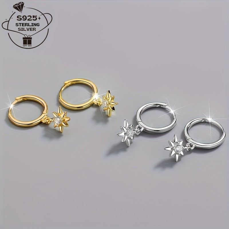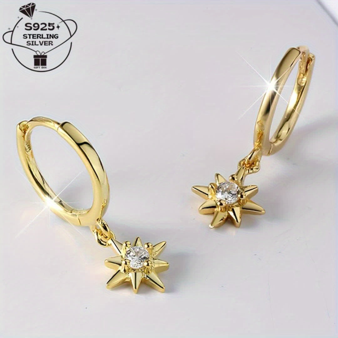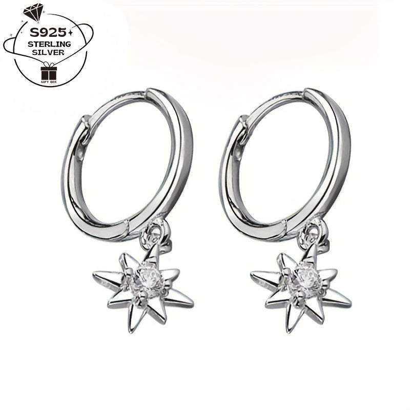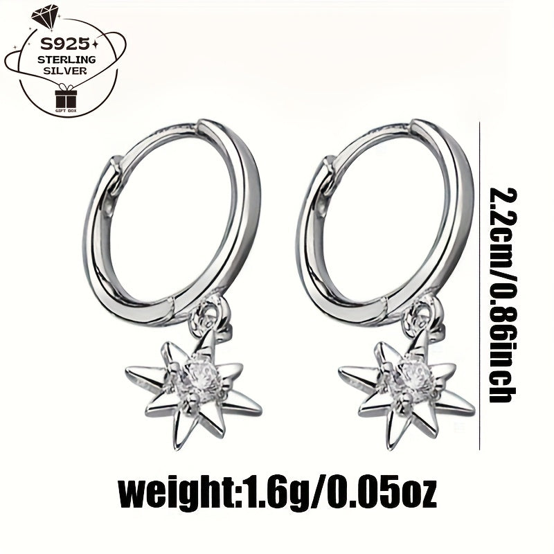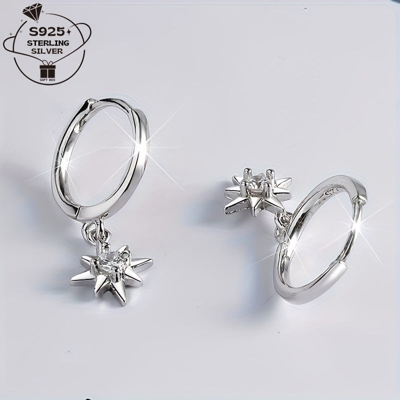 These stunning star hoop earrings are made of 925 sterling silver and feature sparkling cubic zirconia stones. They are perfect for everyday wear or special occasions, adding a touch of dreamy elegance to your outfit.