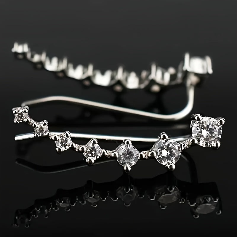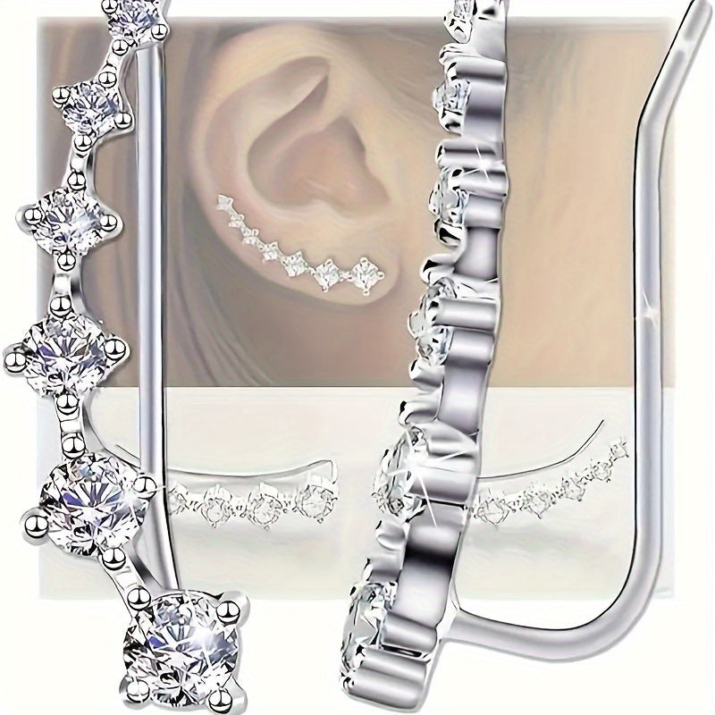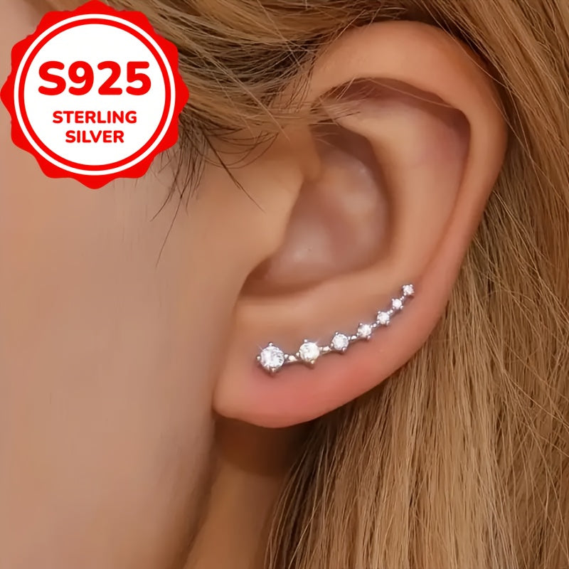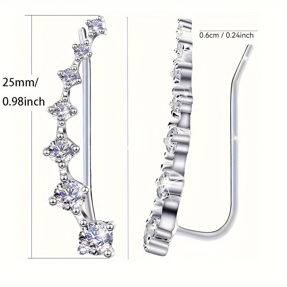 925 Silver Stud Earrings CZ Inlay Climbing Hypoallergenic Daily Wear Gift 3 1g