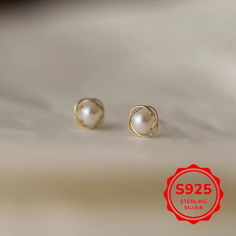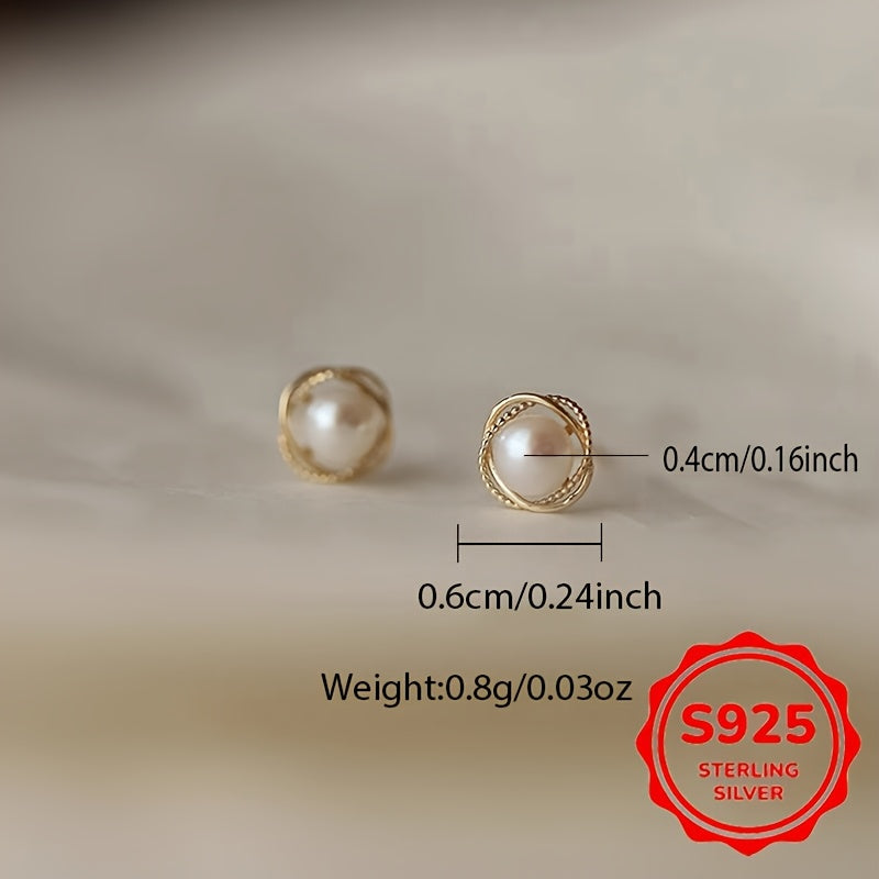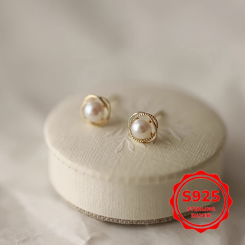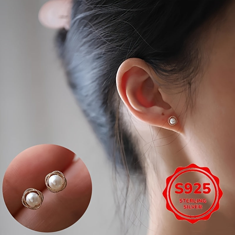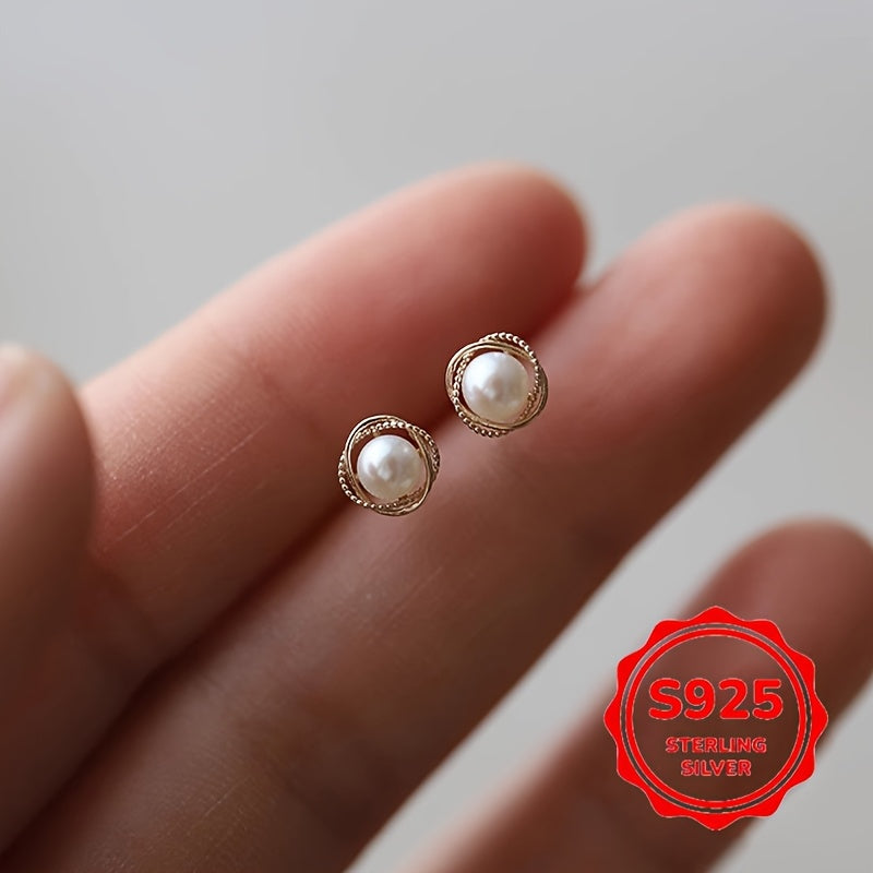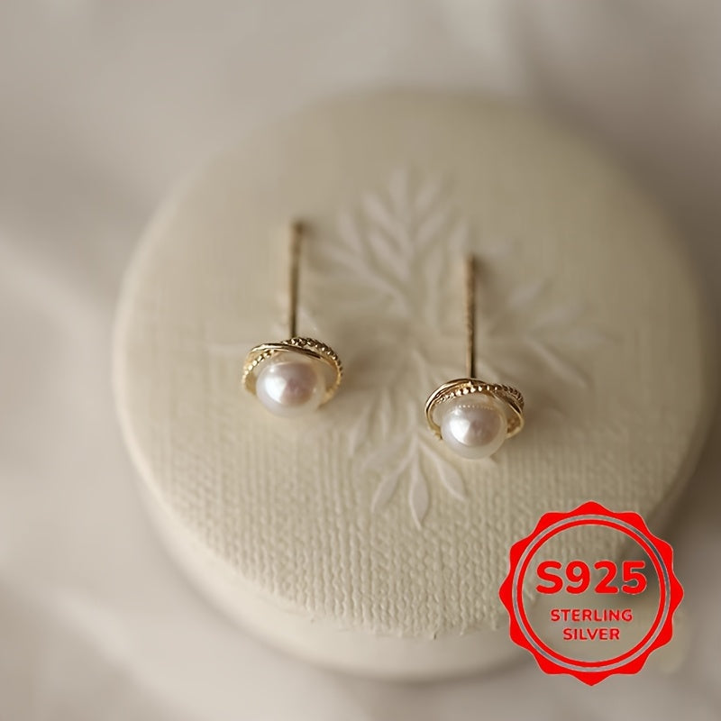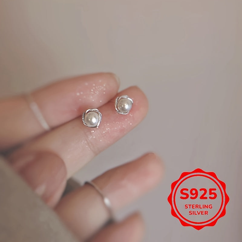 These elegant stud earrings are made of 925 sterling silver with imitation pearls. They have a vintage and artistic design that can be worn daily or for special occasions. Perfect for all seasons and versatile styling.