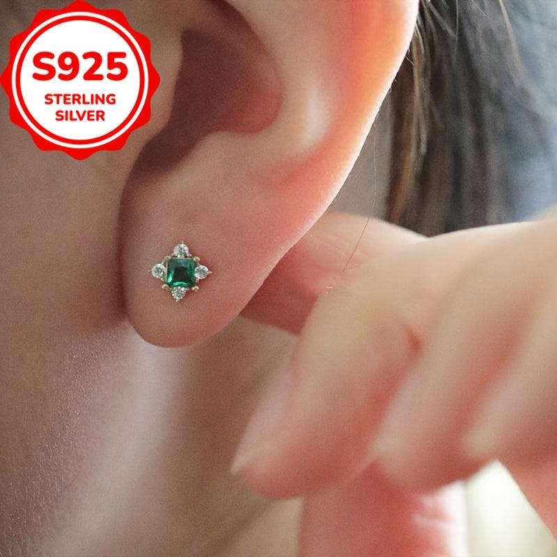 These stunning stud earrings are made of 925 sterling silver and feature synthetic zirconia stones. They have a French vintage style design with a celestial symbols theme. Perfect for those born in April or anyone who loves celestial jewelry.