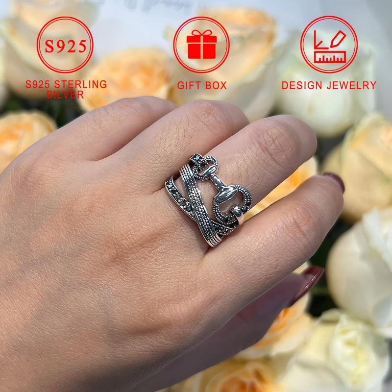 This vintage-inspired cross ring is made of 925 sterling silver and features sparkling cubic zirconia stones. Perfect for adding a bold statement to any outfit.