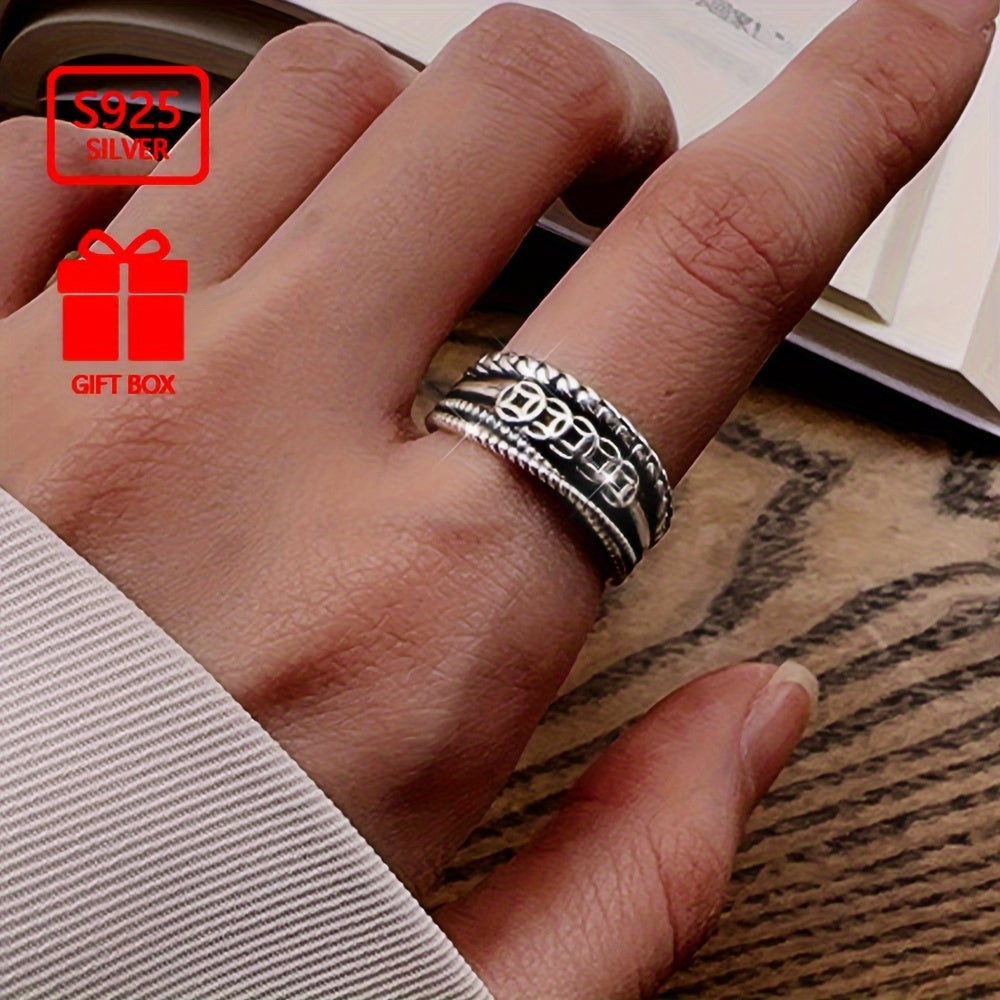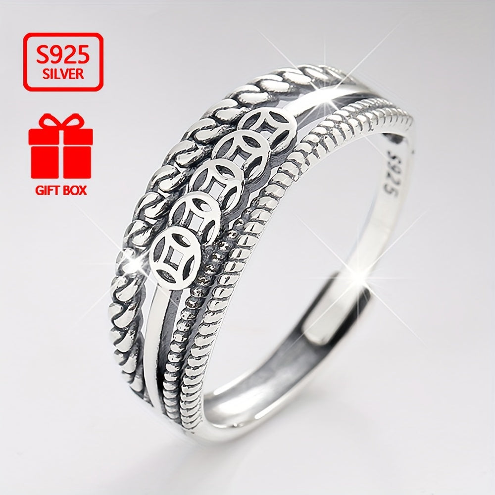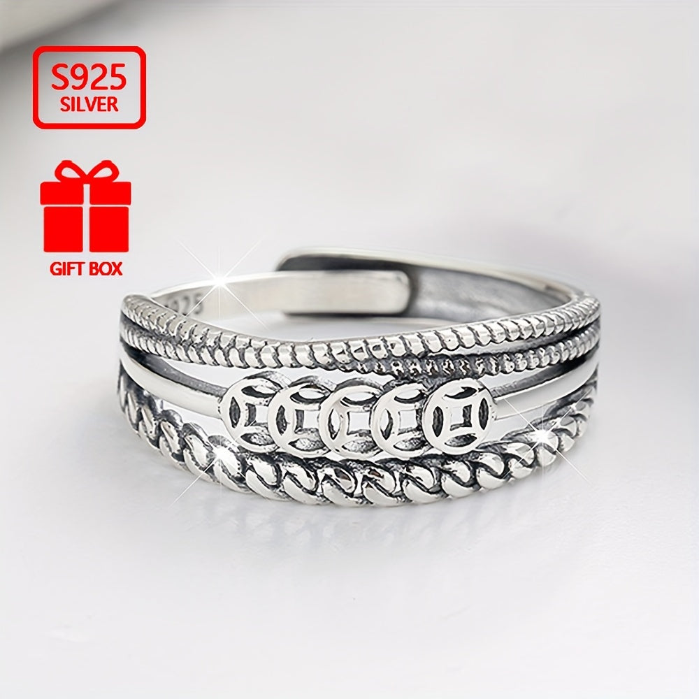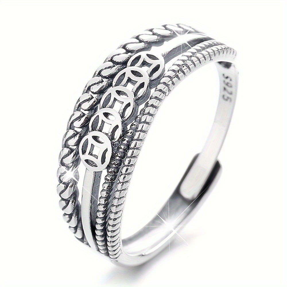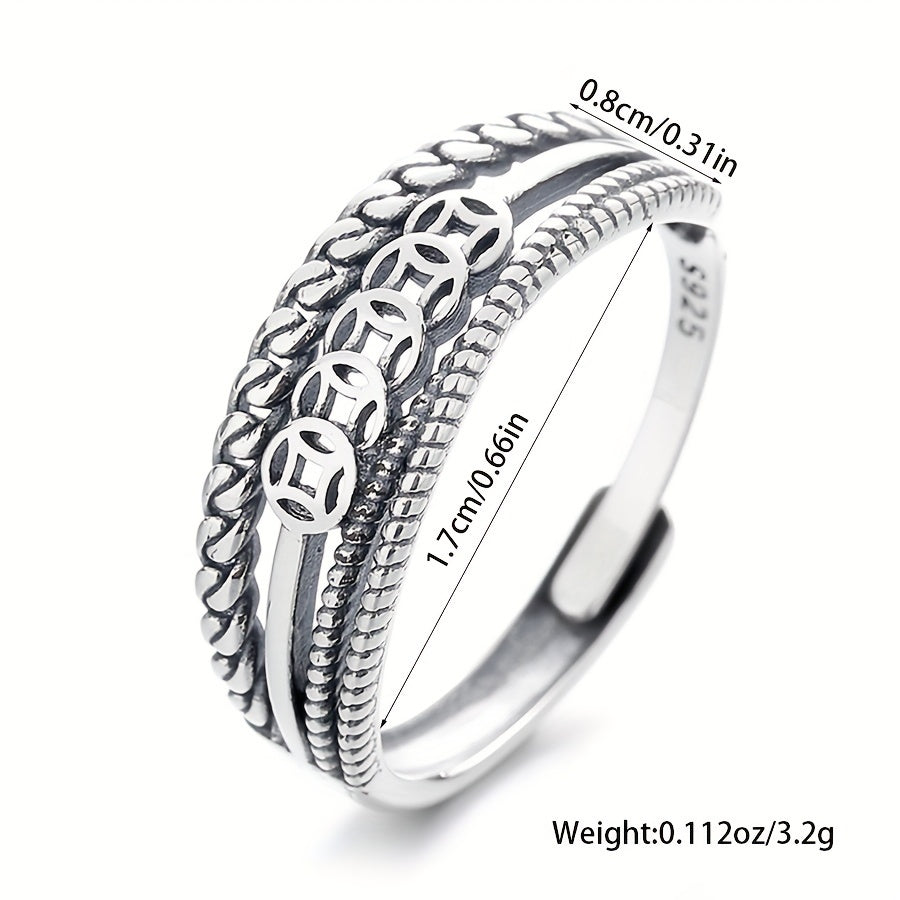 925 Silver Vintage Distressed Copper Coin Ring Ethnic Style