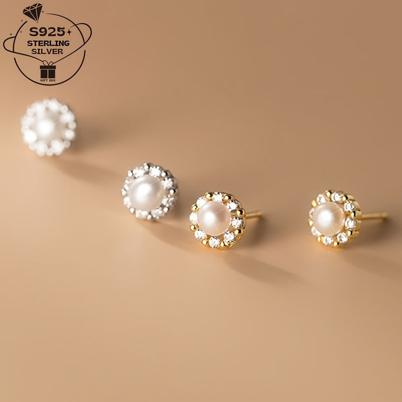 Add a touch of elegance to your outfit with these vintage earrings. Crafted from 925 silver, they feature imitation pearls and synthetic zircons for a luxurious look.