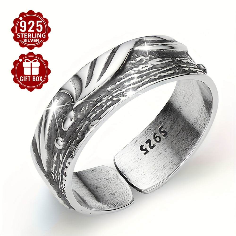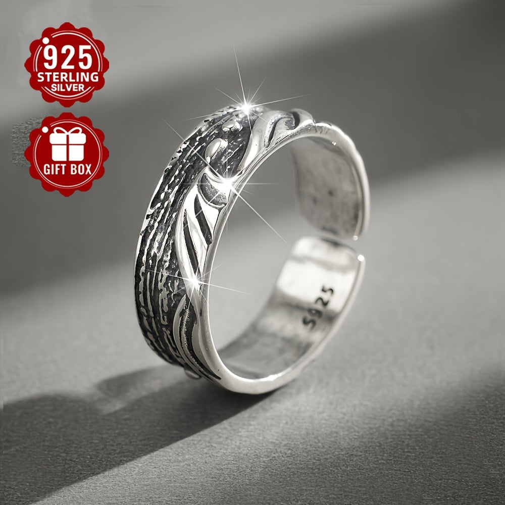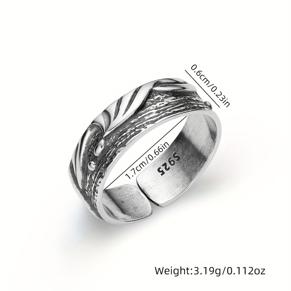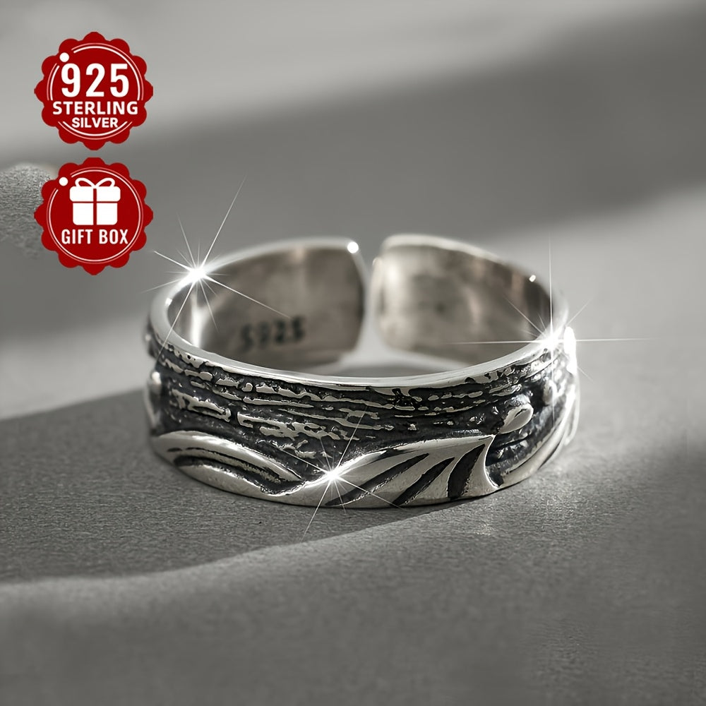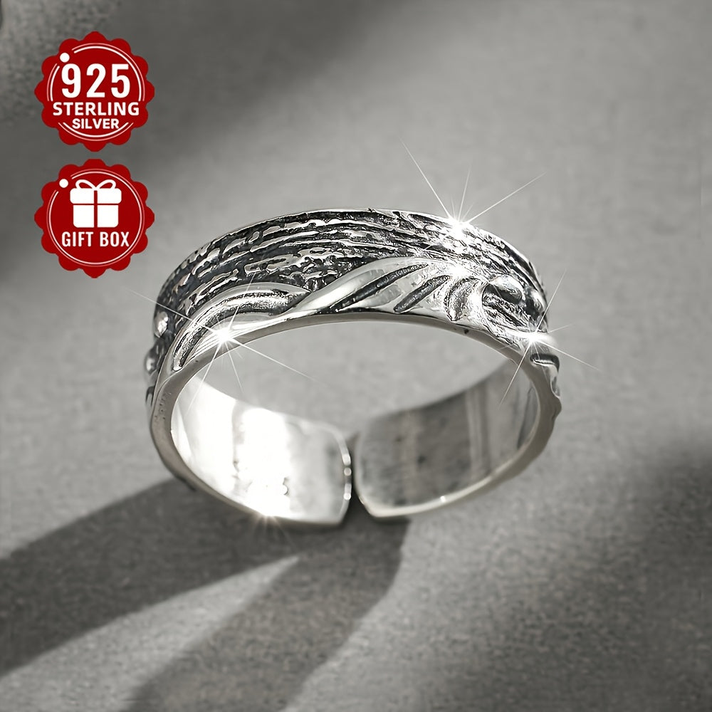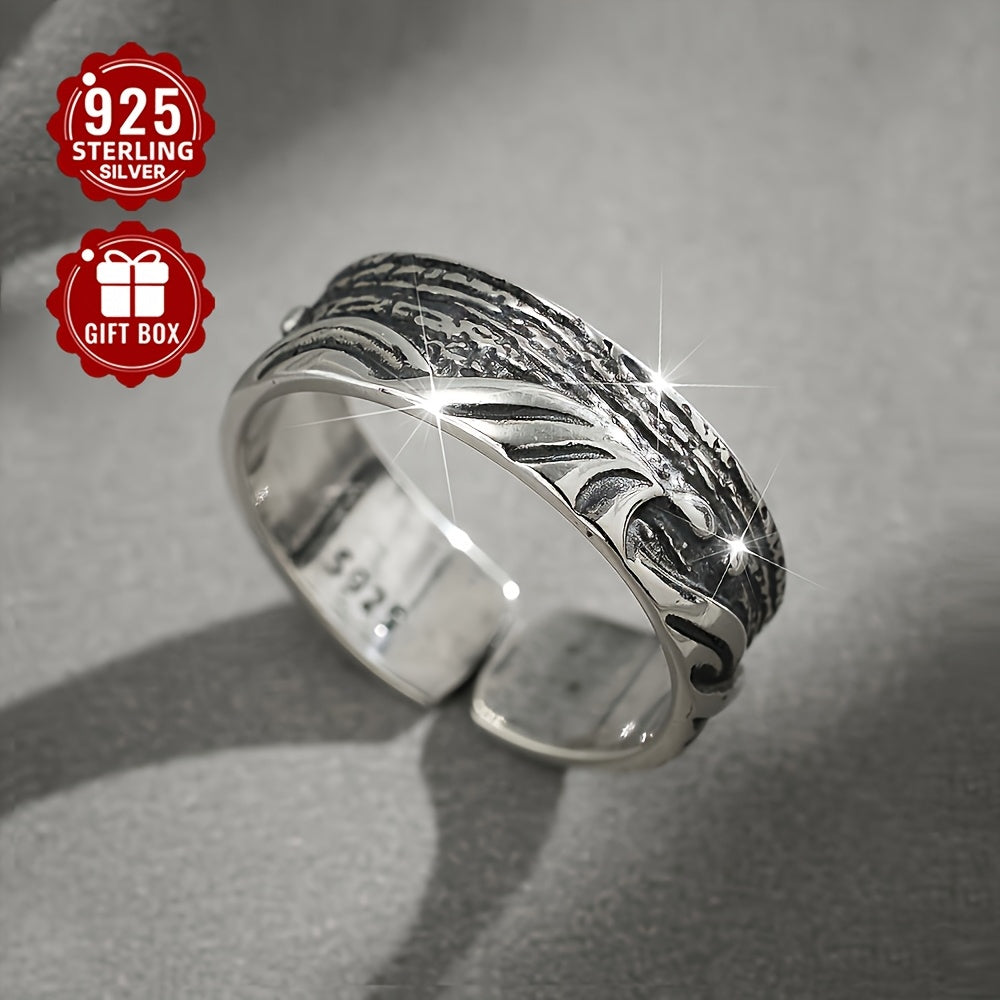 This 925 sterling silver retro ring features an irregular wide face with wavy patterns, perfect for parties and gatherings. The open design makes it suitable for both men and women.