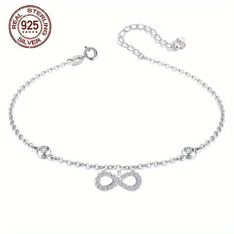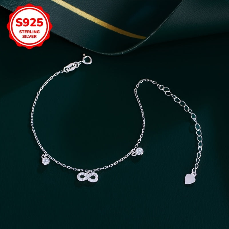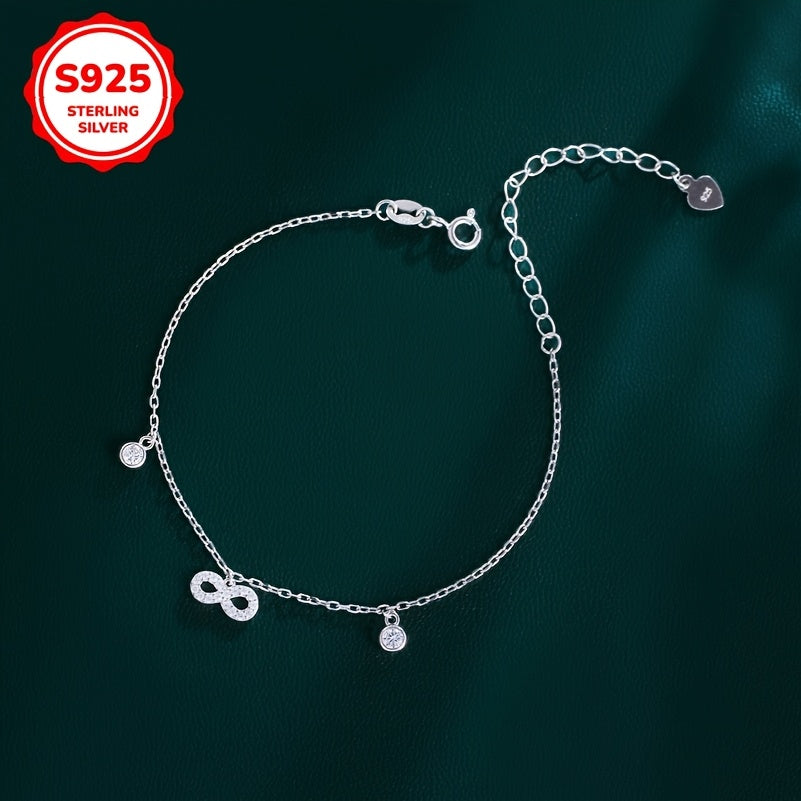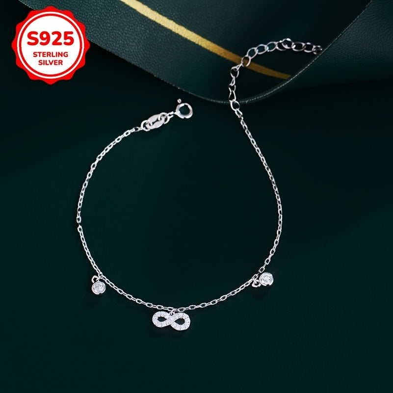 925 Silver Women's Infinity Pendant Bracelet with Dangling Decorations