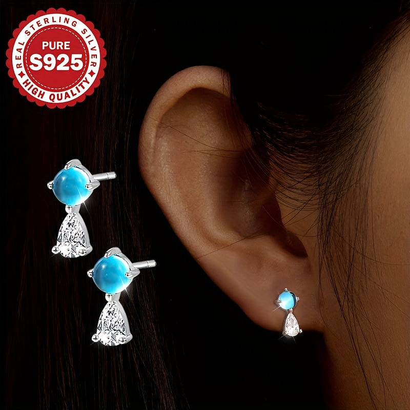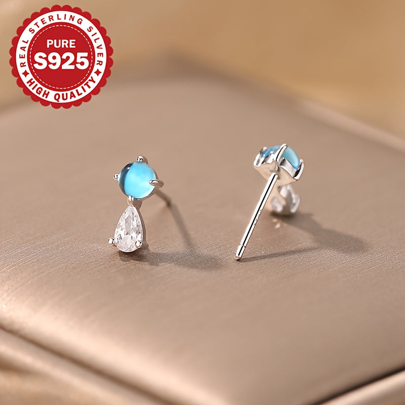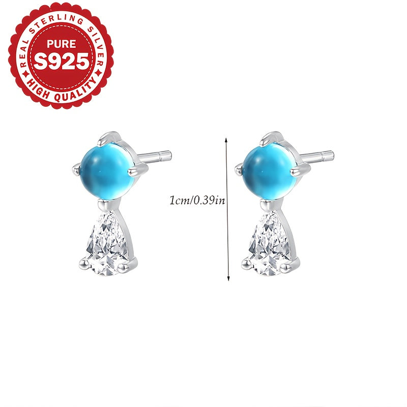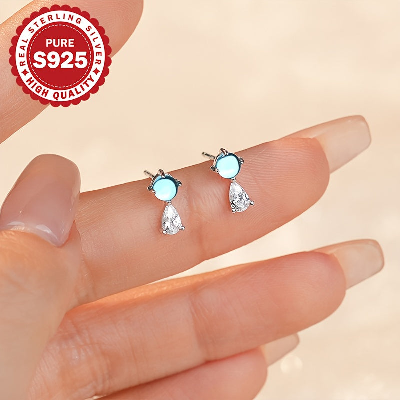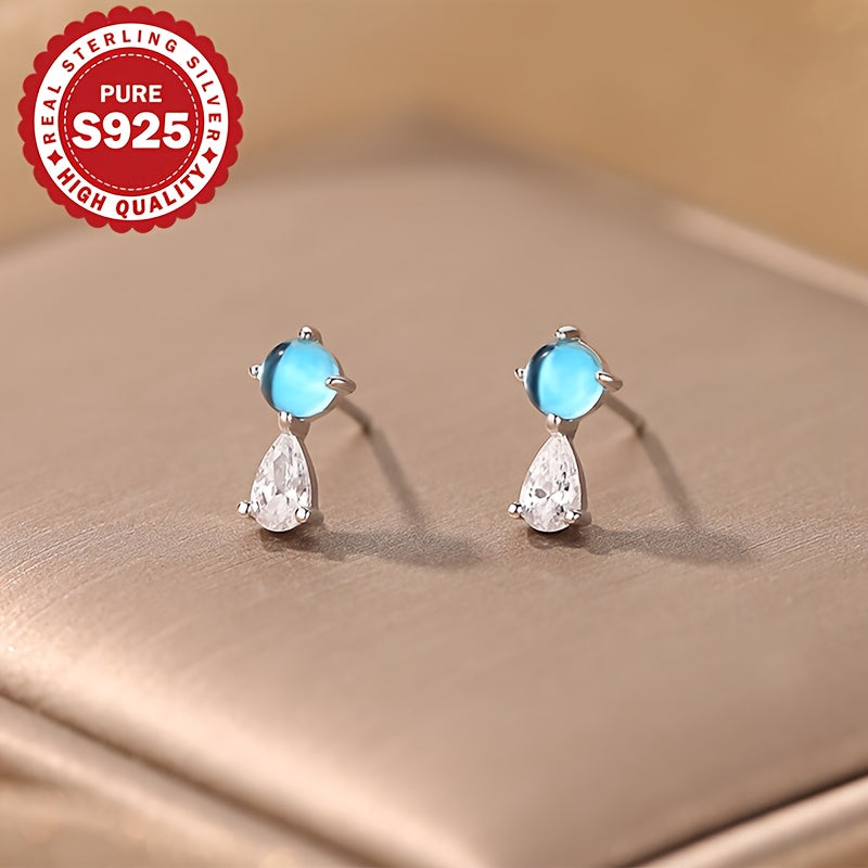 Sterling silver teardrop earrings featuring zirconia stones. Hypoallergenic and lightweight at 0.9g, ideal for daily wear or as a gift for Valentine's Day.