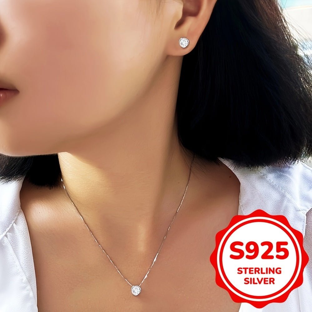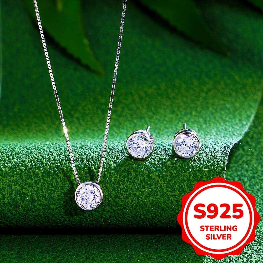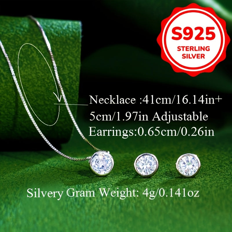 This elegant jewelry set features a 925 pure silvery design with synthetic zirconia inlays, perfect for those with sensitive skin. Ideal for holidays, birthdays, or graduations.