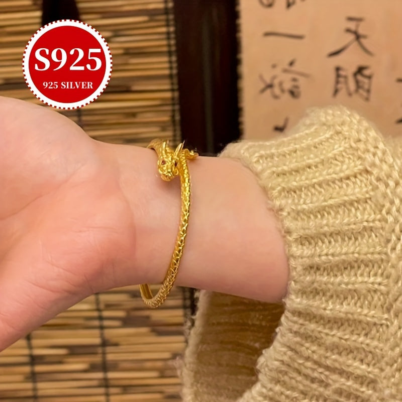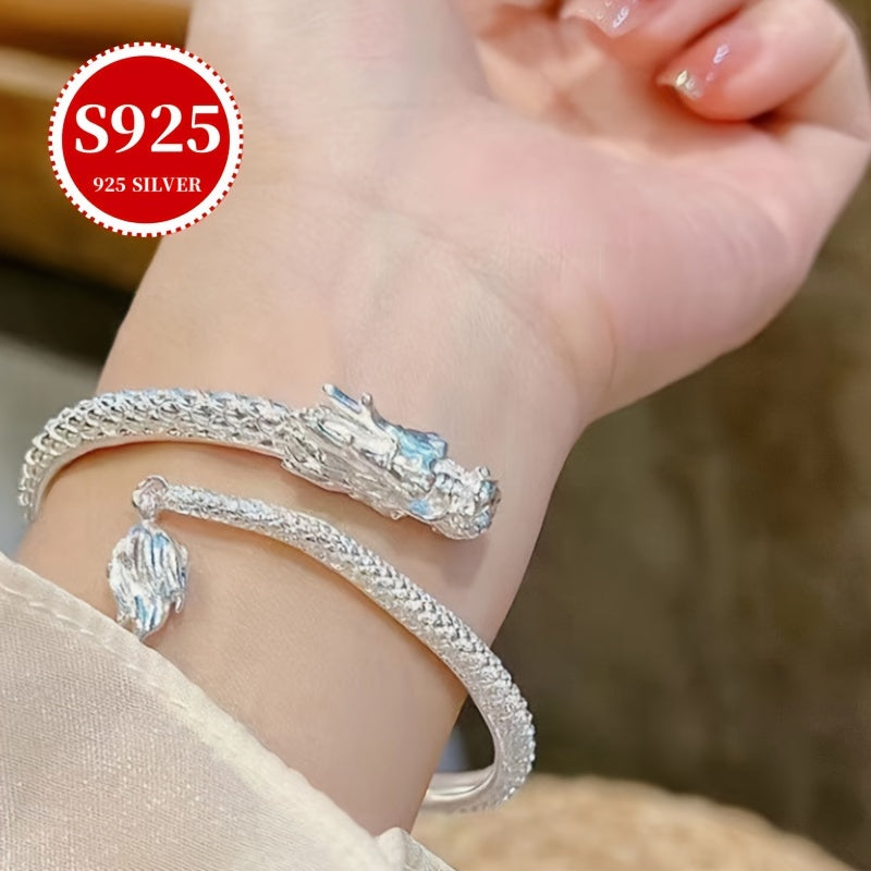 925 Silvery Chinese Dragon Year Bracelet with Opening Tail Couple Bracelet