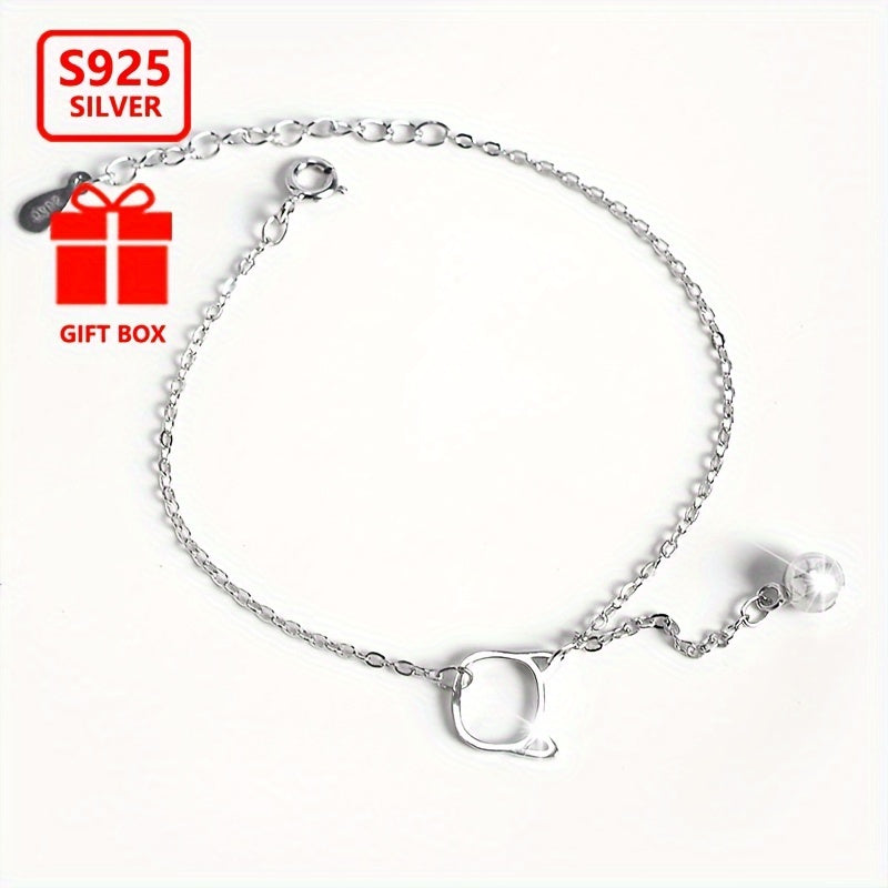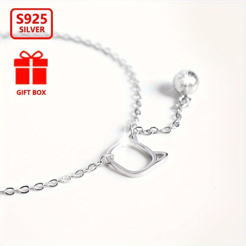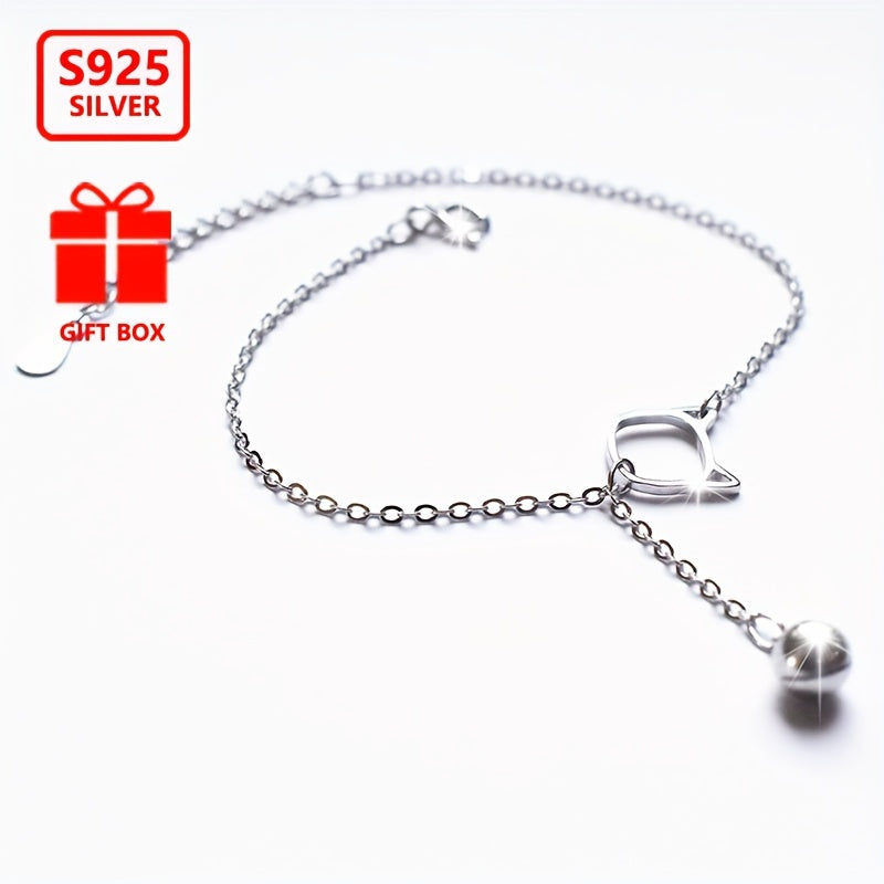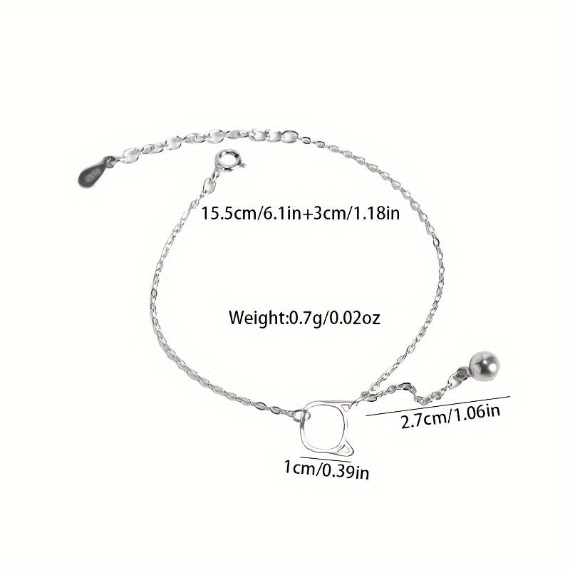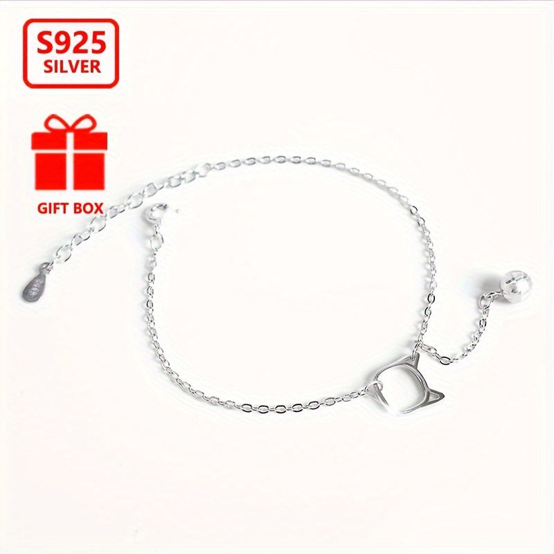 925 Sterling Silver Bell Cat Bracelet for Women