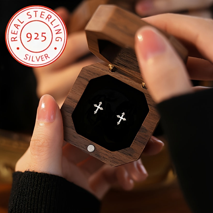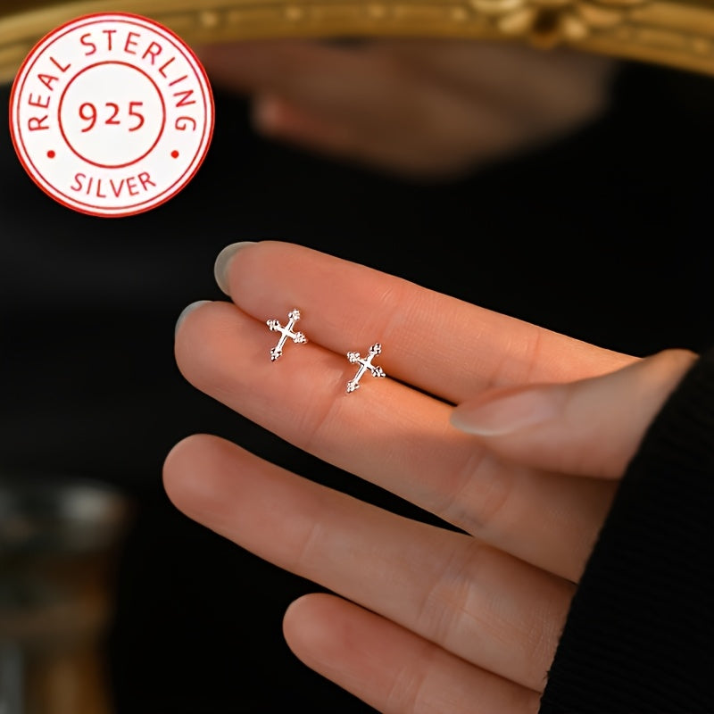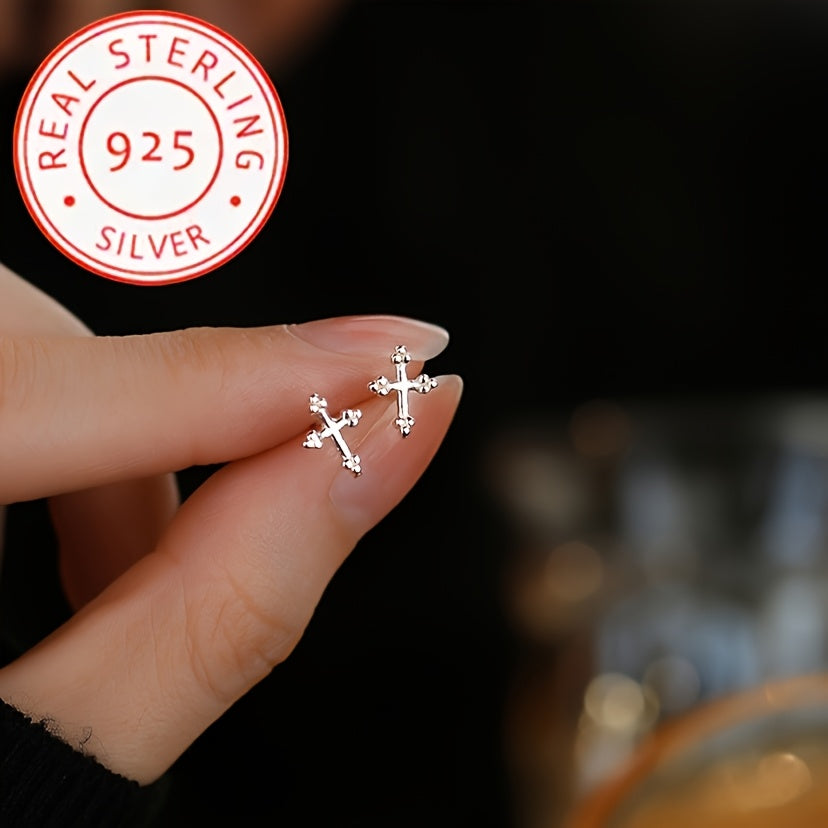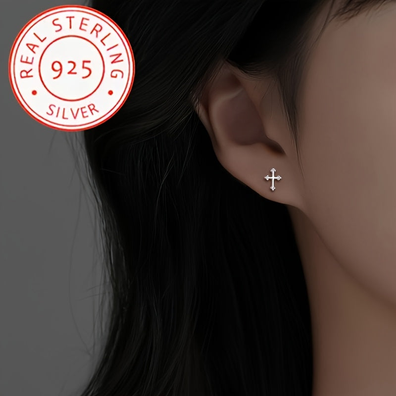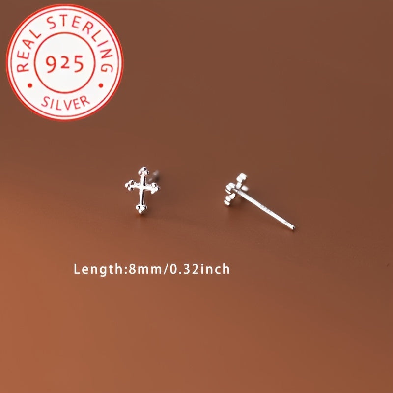 Add a touch of vintage charm to your casual attire with these classic silver cross stud earrings. Made of 925 sterling silver and hypoallergenic, they are perfect for everyday wear or gifting.