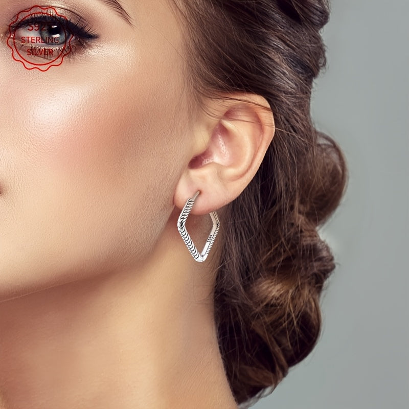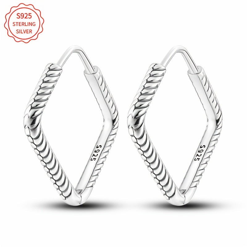 Elegant and unique sterling silver earrings with a sparkling diamond-shaped snake bone pattern, perfect for parties and special occasions.