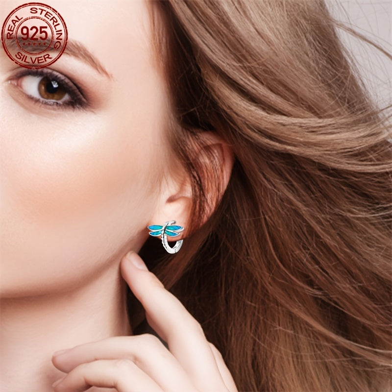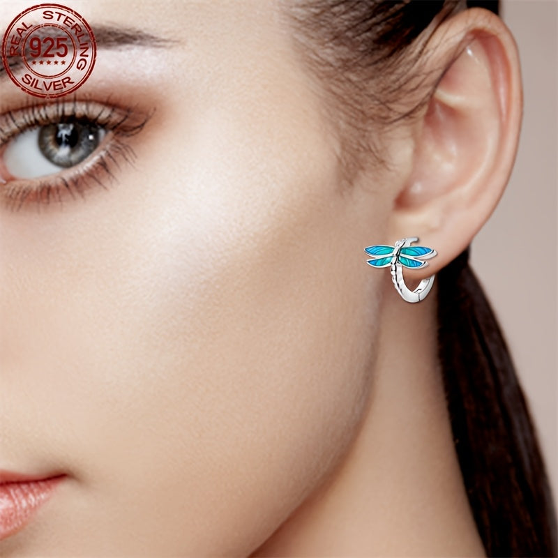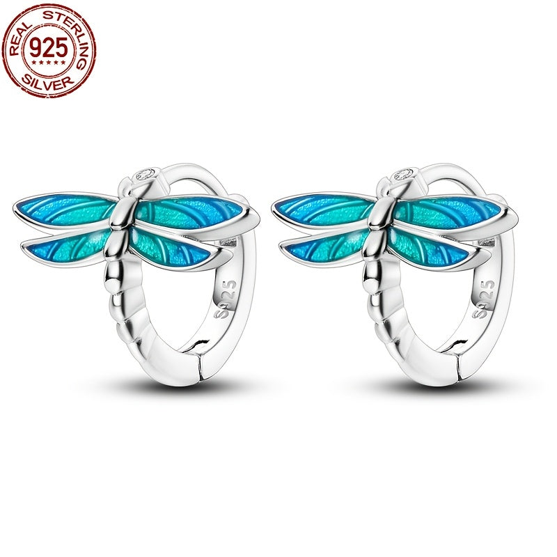 Beautiful dragonfly hoop earrings made of high-quality 925 sterling silver. Perfect gift for Christmas, Valentine's, or parties.