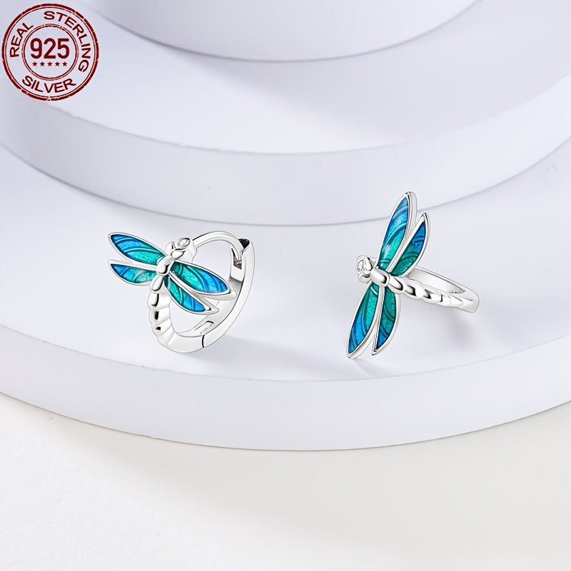 925 Sterling Silver Dragonfly Hoop Earrings Set