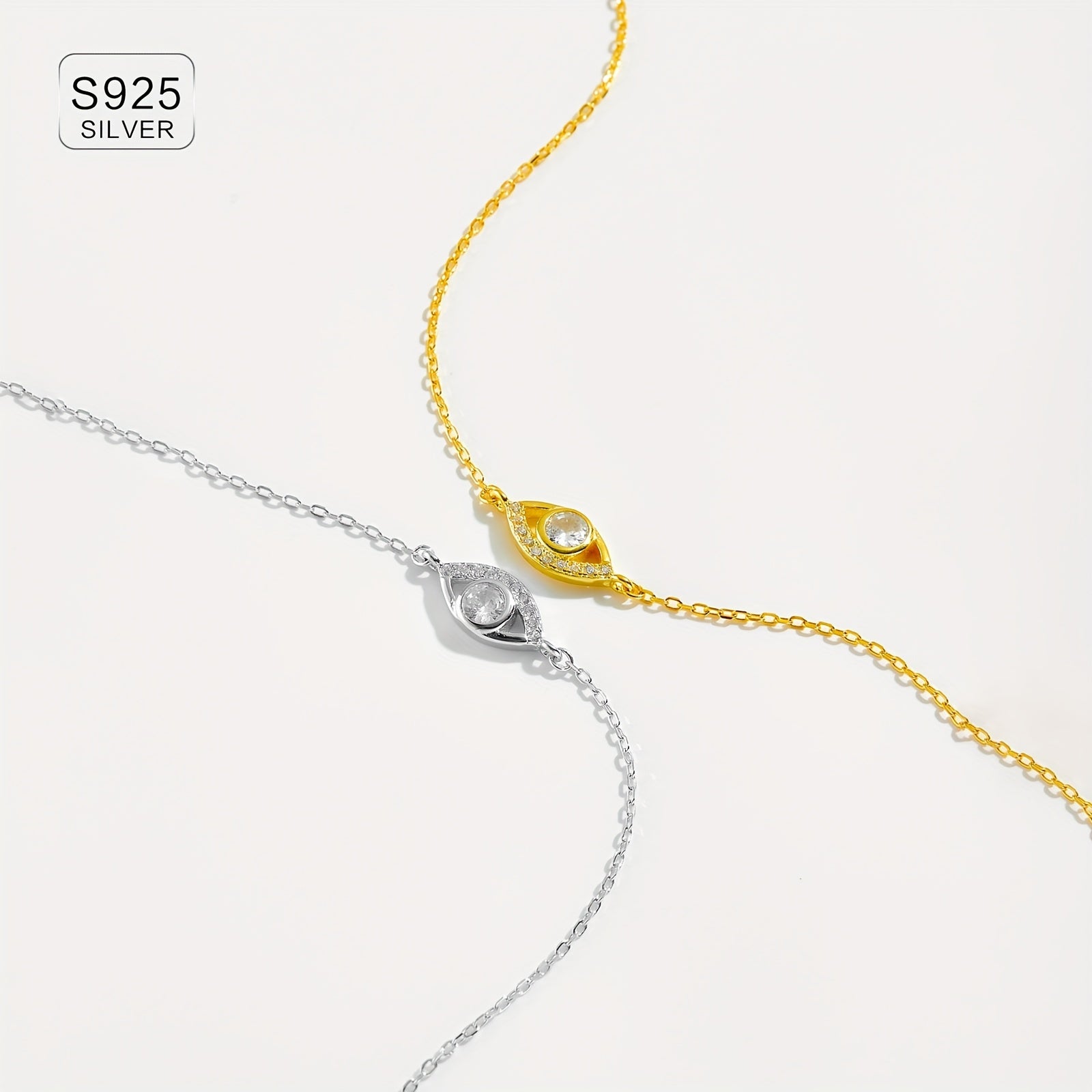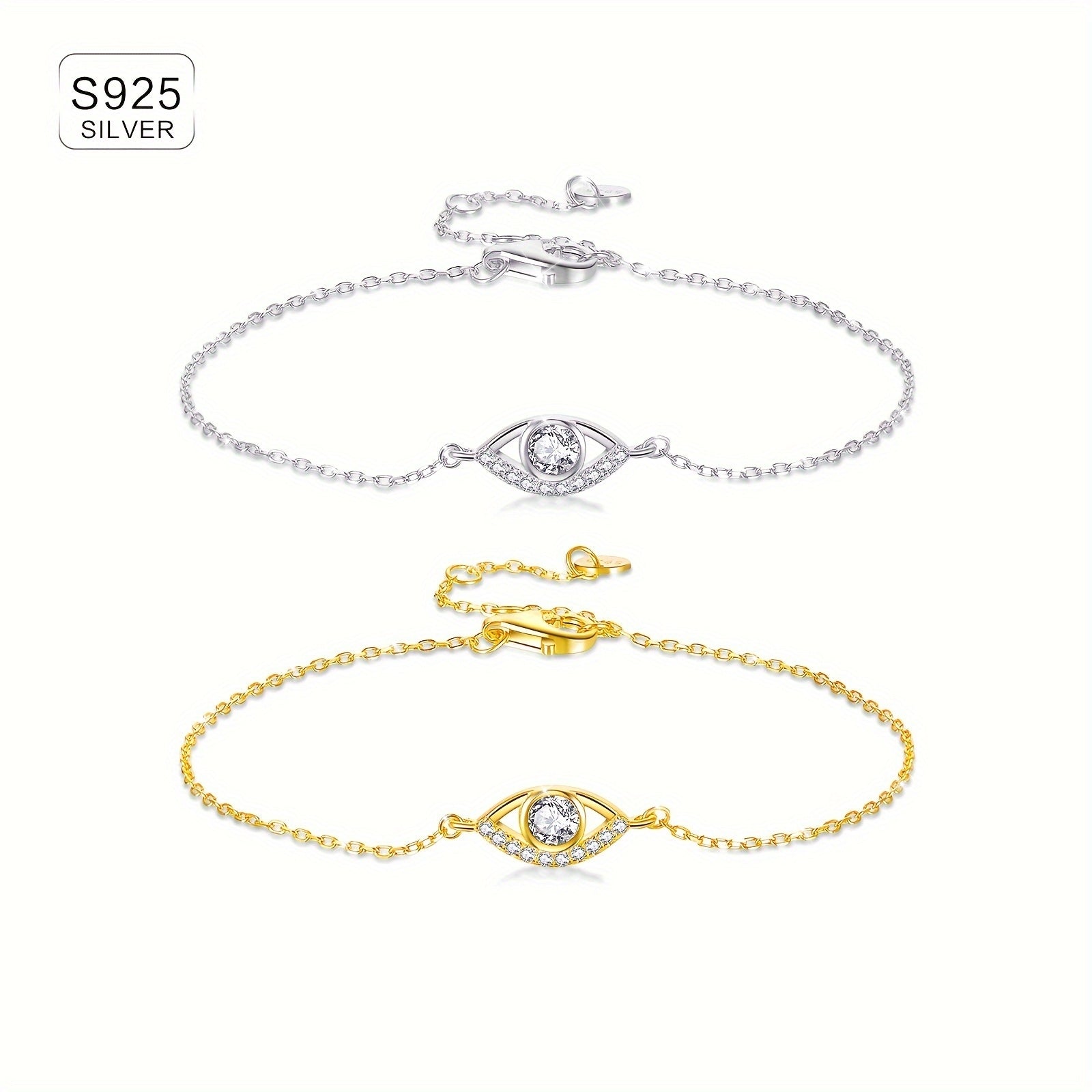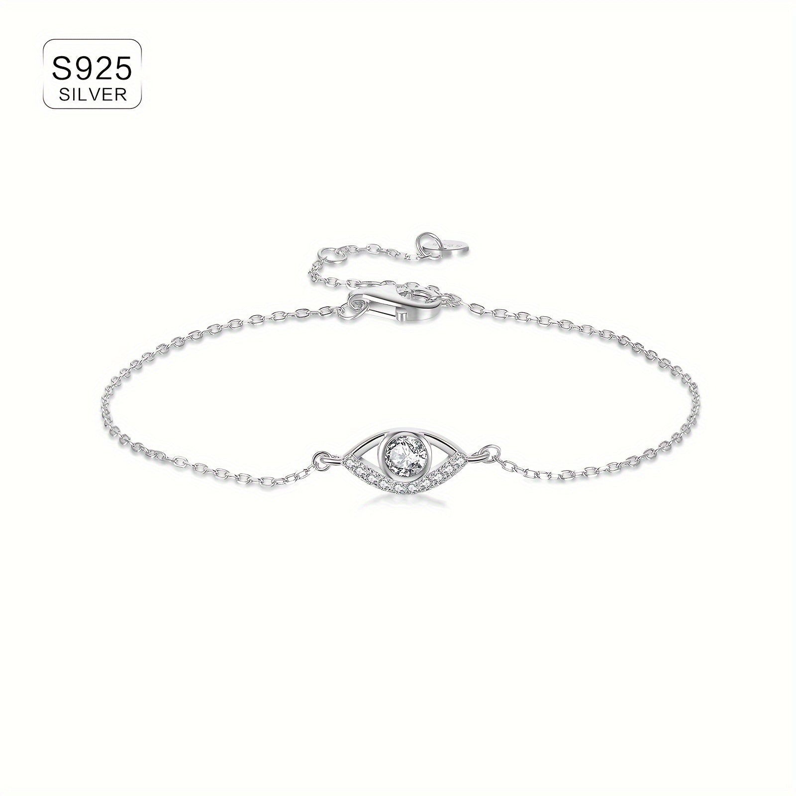 Add a touch of elegance to your look with this stunning 925 sterling silver bracelet featuring a hollow out eye charm set with clear synthetic zirconia. The classic style and high-quality materials make it a perfect accessory for any occasion.
