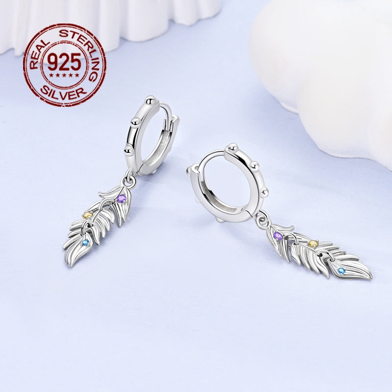 These boho vintage-inspired earrings feature delicate feather fringe design with artificial zirconia accents. Perfect for a stylish and unique look.