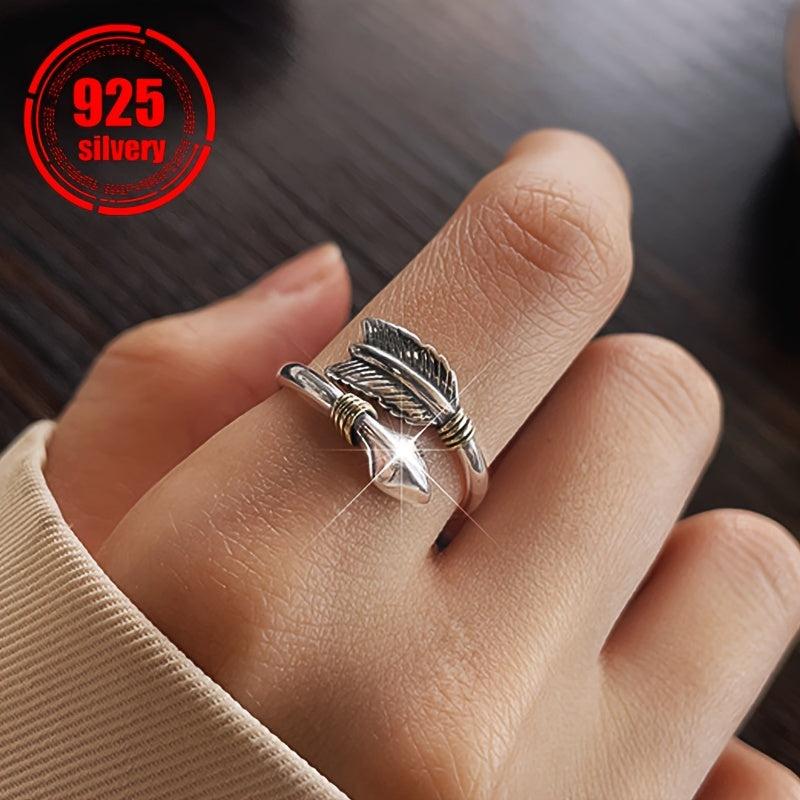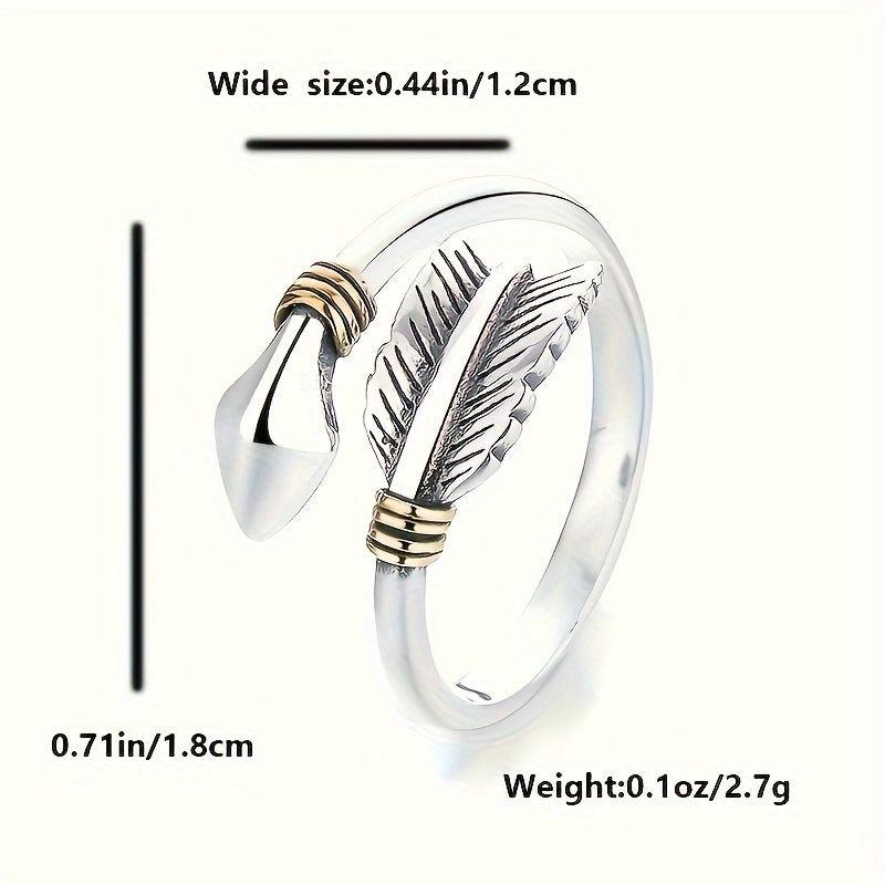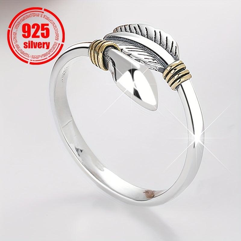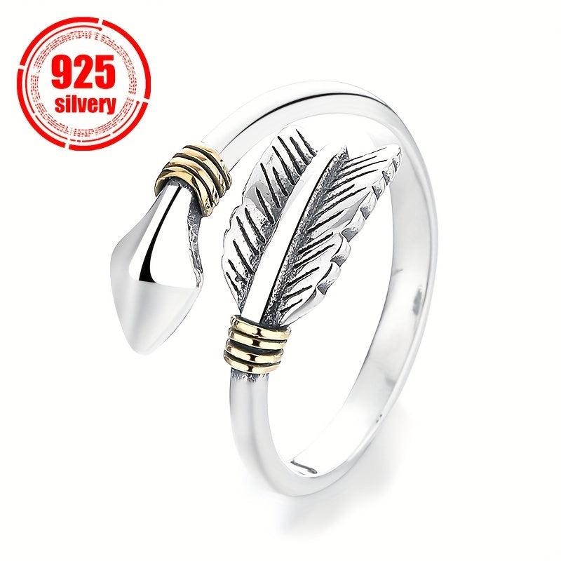 Elegant and versatile ring crafted from 925 sterling silver in a retro feather design. Perfect for daily wear, outings, activities, gatherings, and as a thoughtful gift.